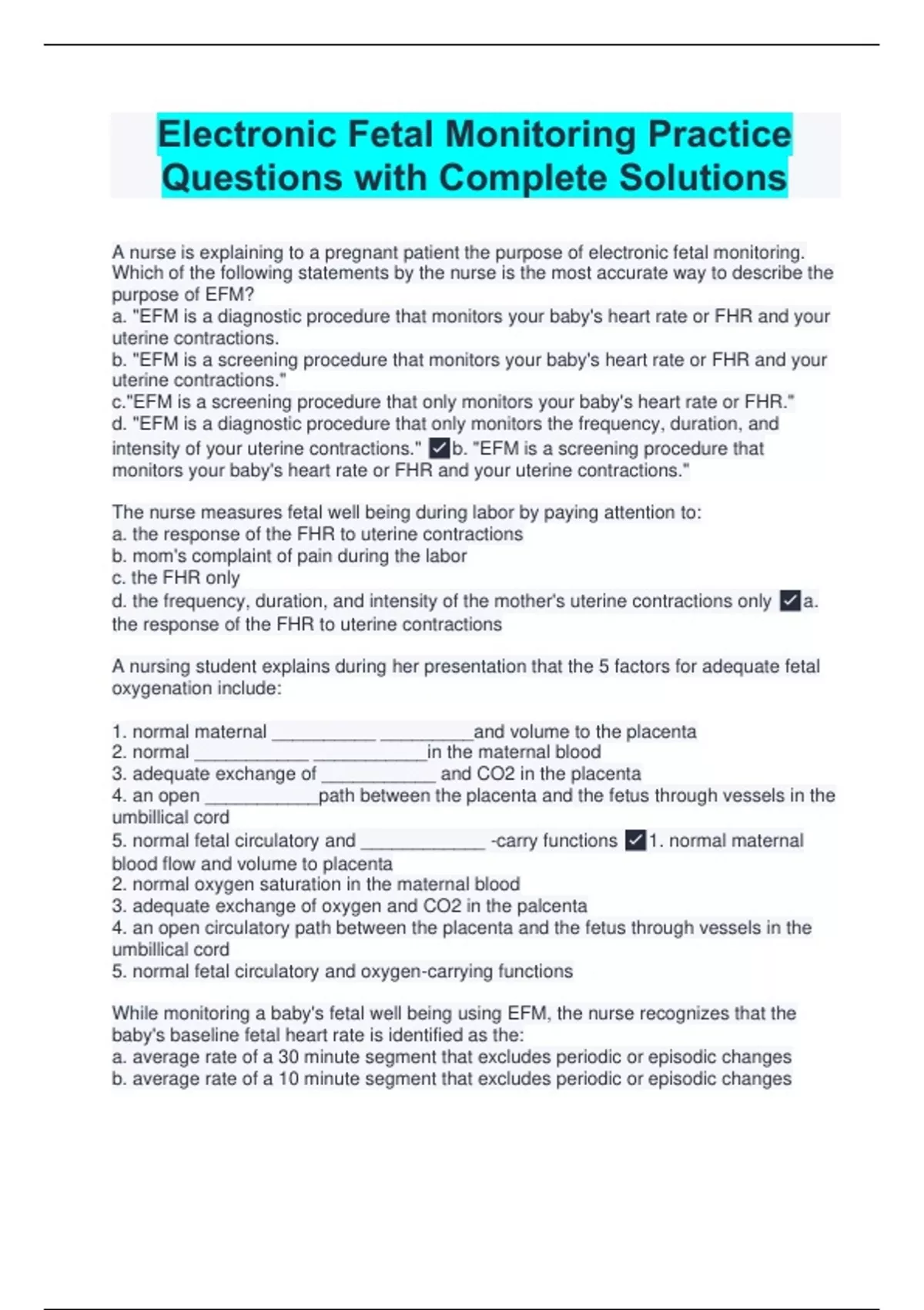 Electronic Fetal Monitoring Practice Questions with Complete Solutions