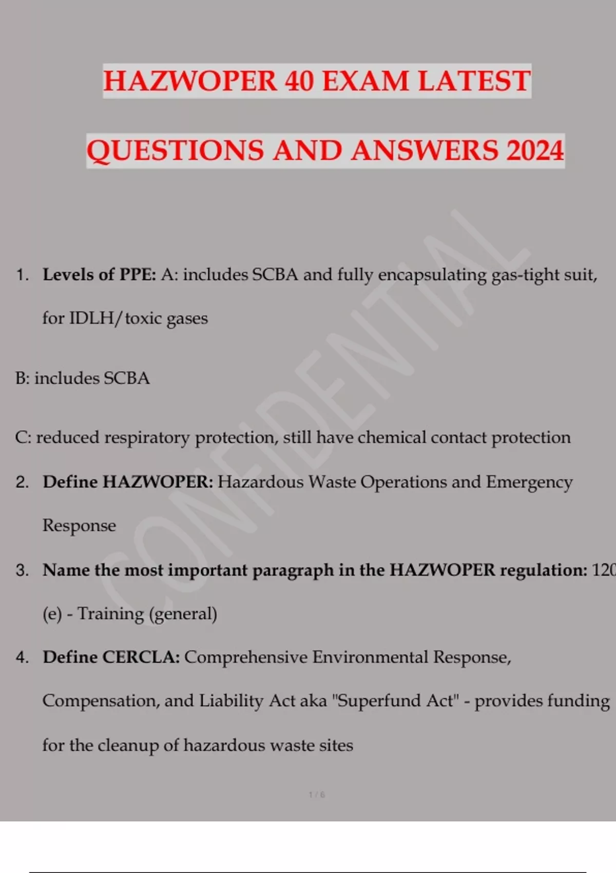 HAZWOPER 40 EXAM LATEST QUESTIONS AND ANSWERS 2024