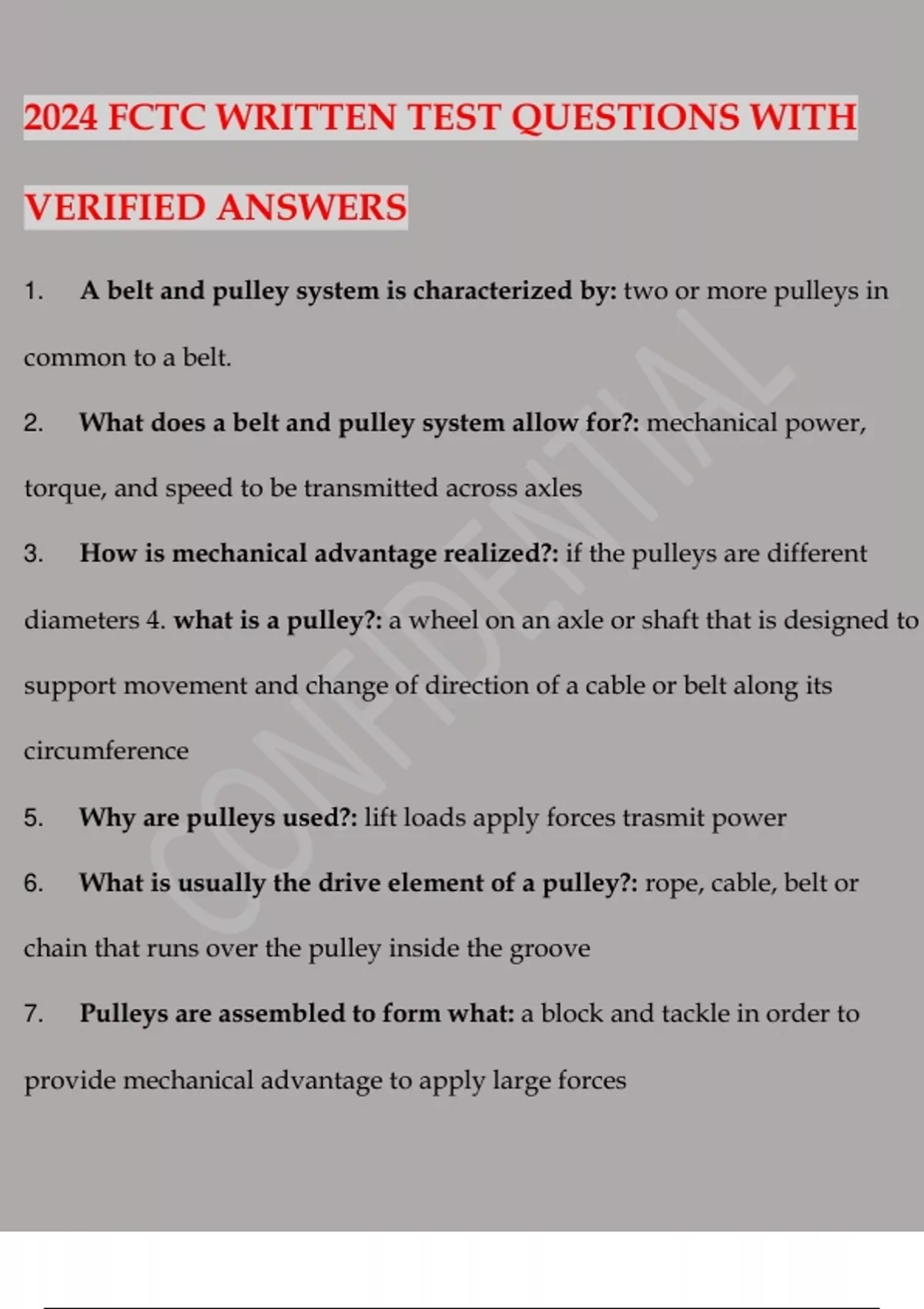 FCTC WRITTEN TEST 2024 QUESTIONS WITH VERIFIED ANSWERS