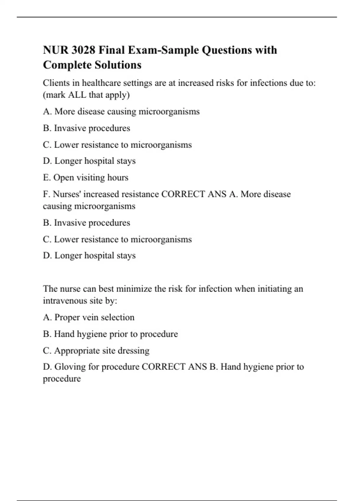nur 3028 final exam sample questions with complete