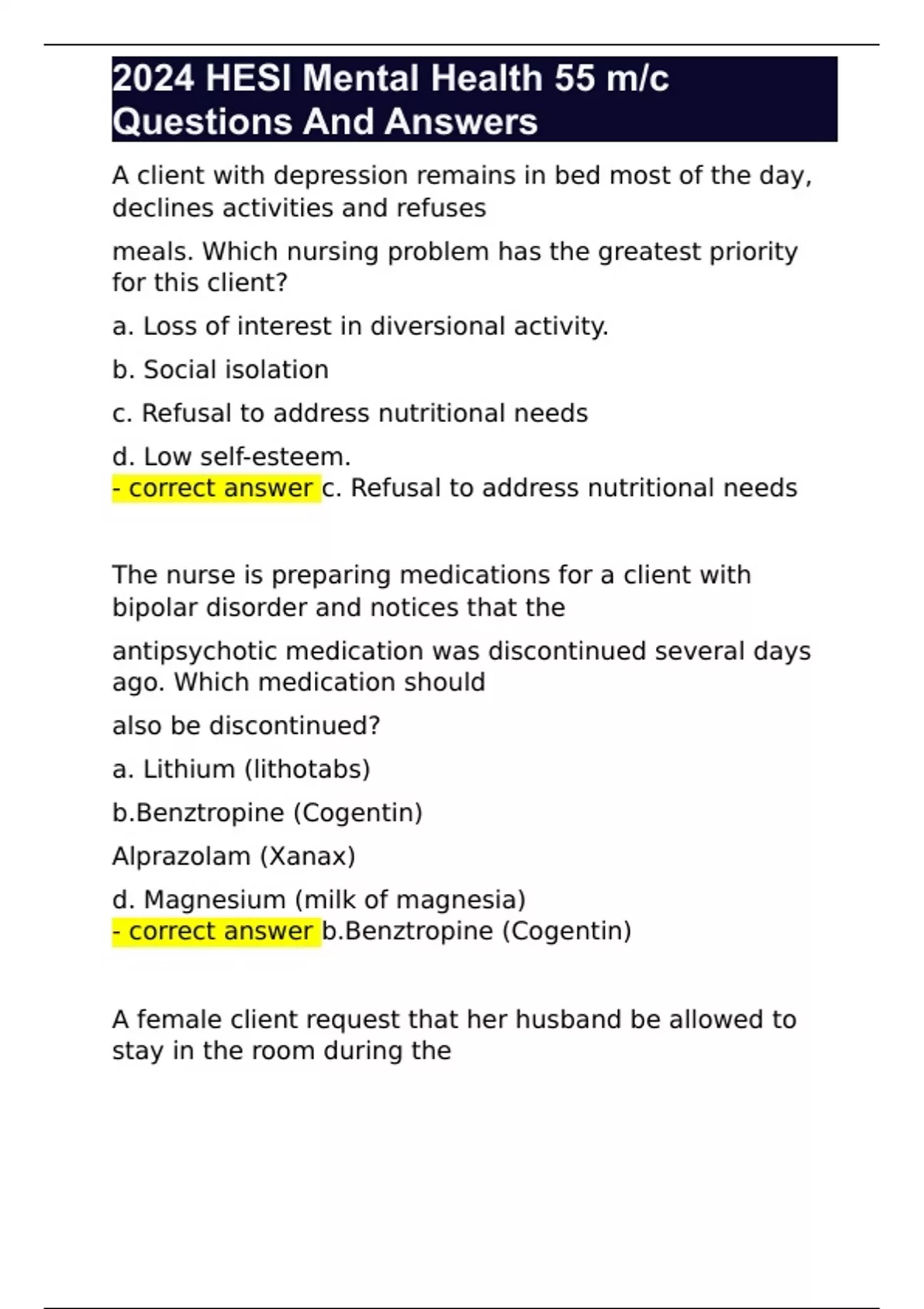 2024 HESI Mental Health 55 m/c Questions And Answers
