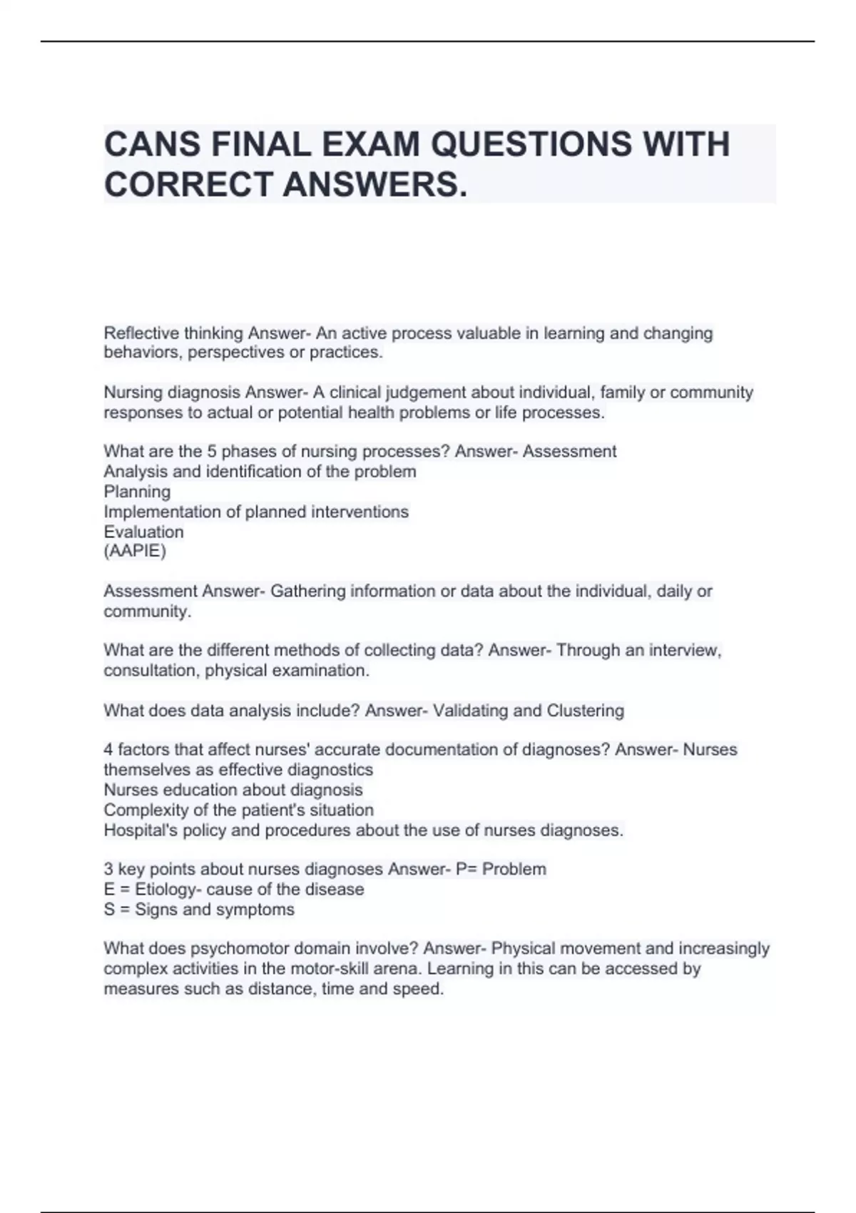 CANS FINAL EXAM QUESTIONS WITH CORRECT ANSWERS