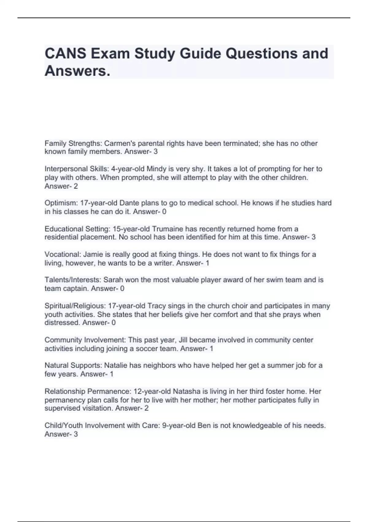 CANS Exam Study Guide Questions and Answers