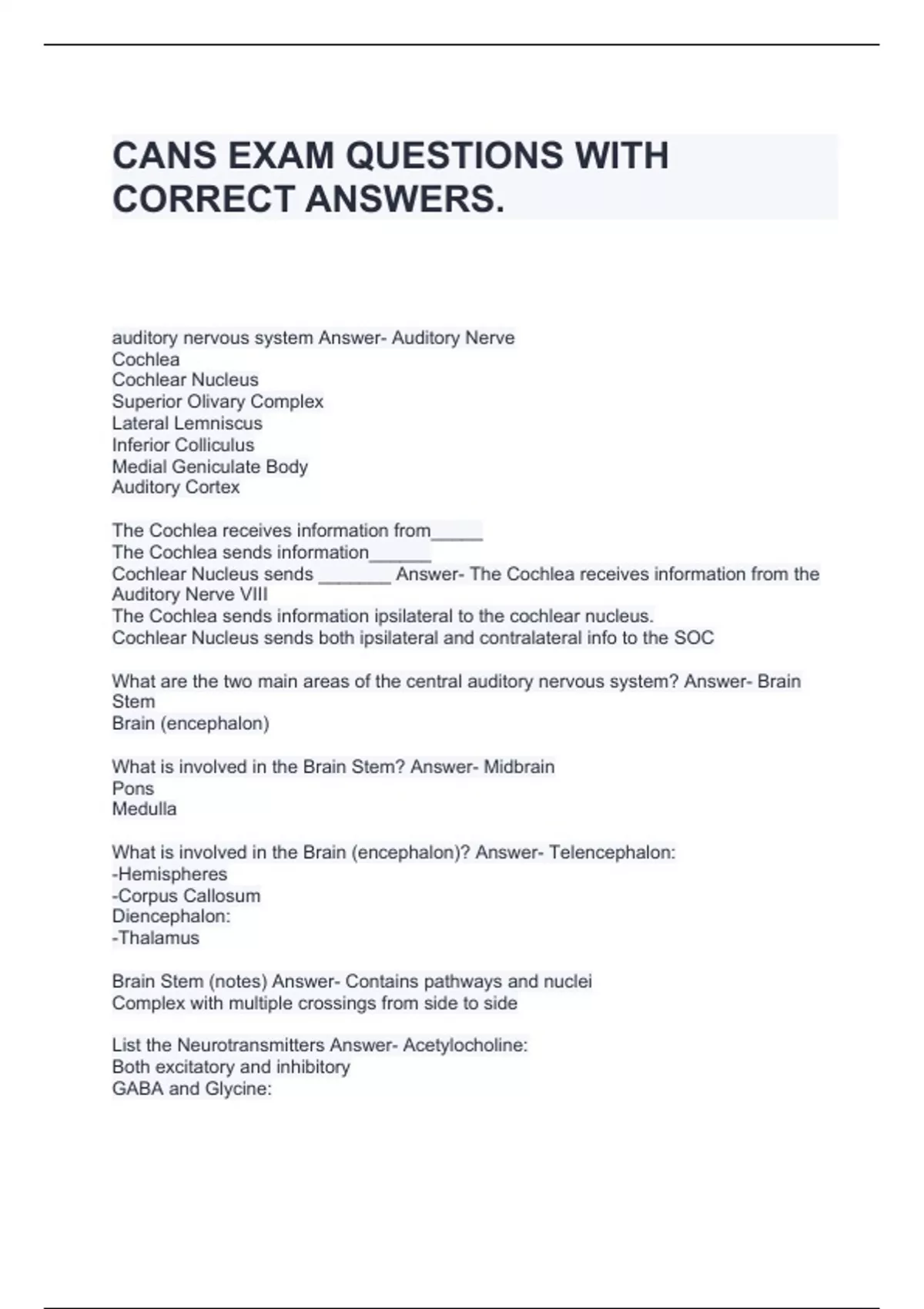 CANS EXAM QUESTIONS WITH CORRECT ANSWERS