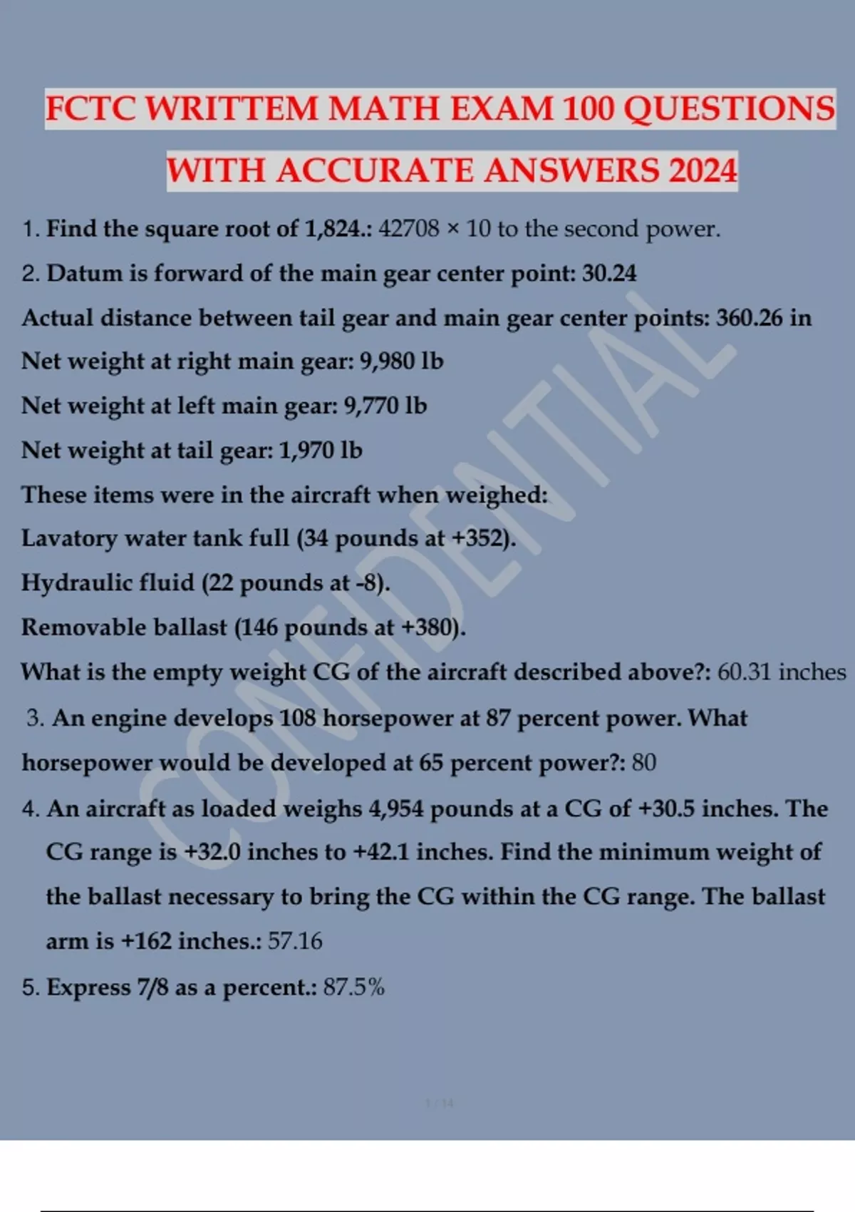 FCTC WRITTEN MATH EXAM 100 QUESTIONS WITH ACCURATE ANSWERS 2024