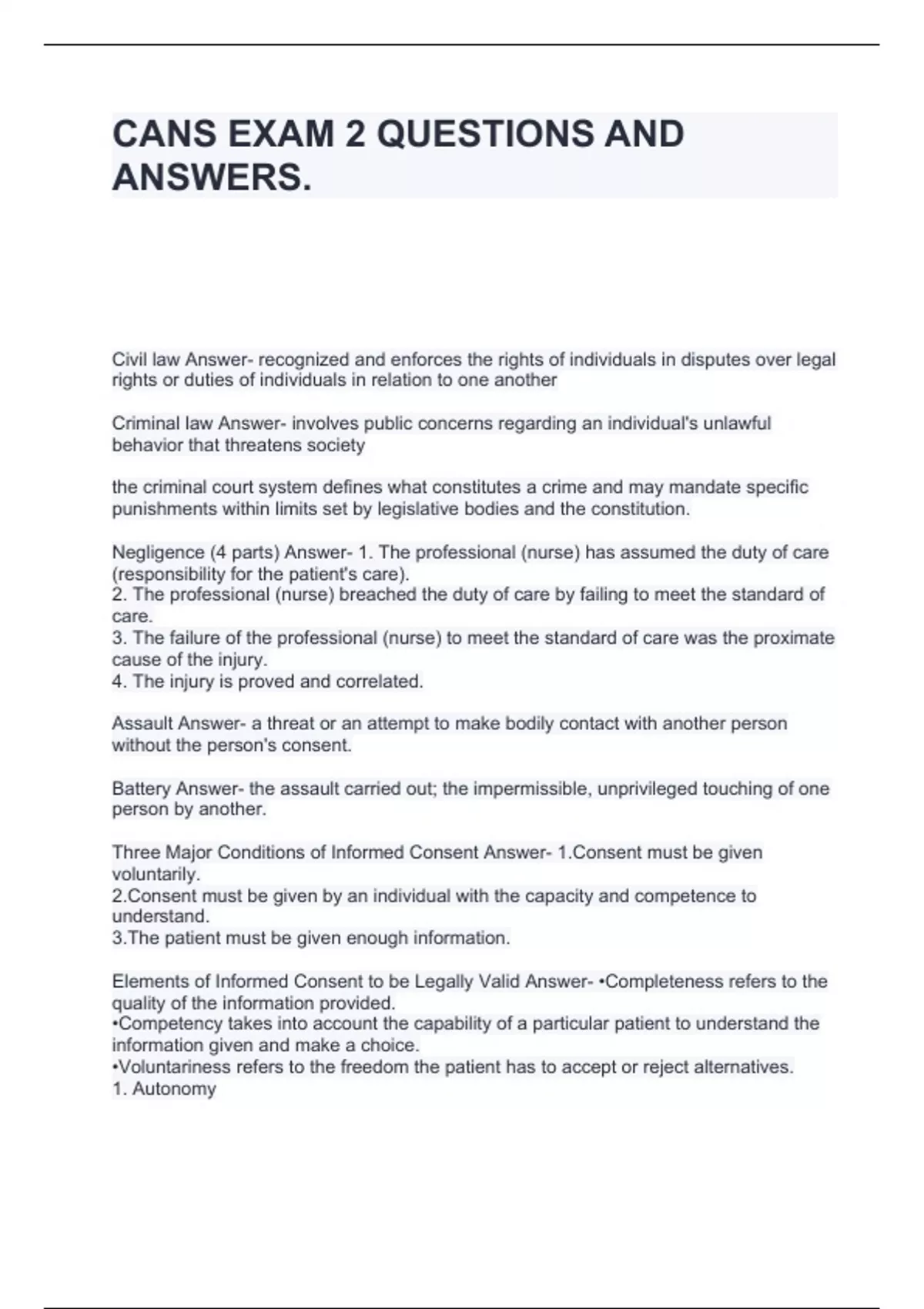 cans exam 2 questions and answers