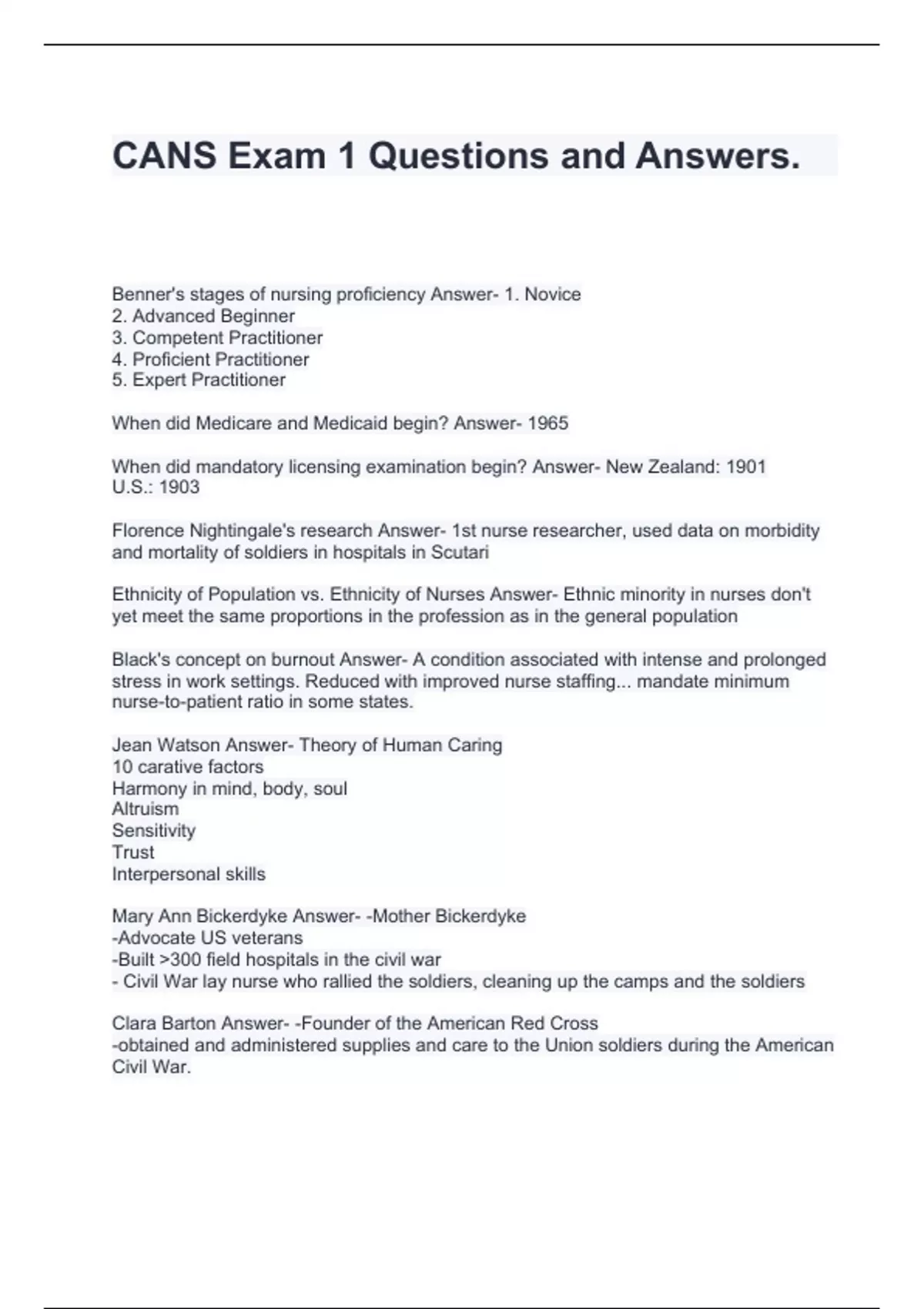 CANS Exam 1 Questions and Answers