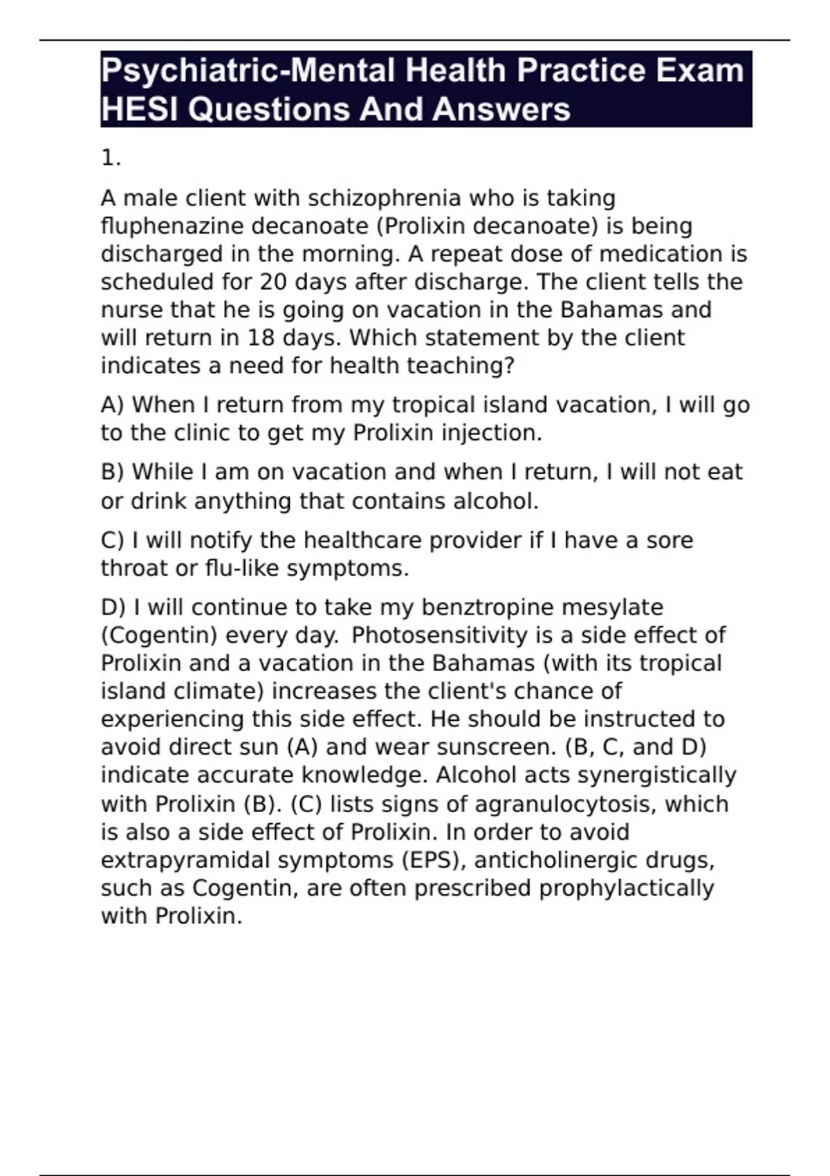 Psychiatric-Mental Health Practice Exam HESI Questions And Answers