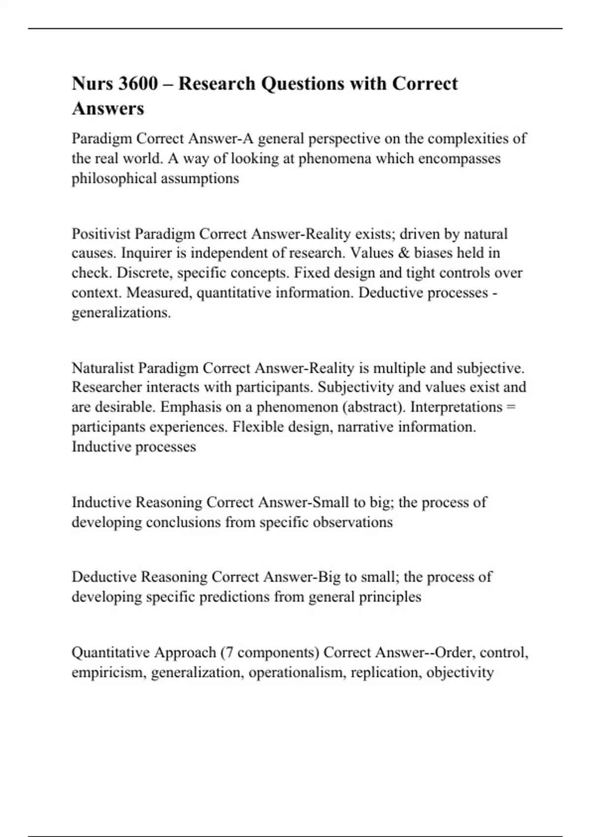 Nurs 3600 – Research Questions with Correct Answers
