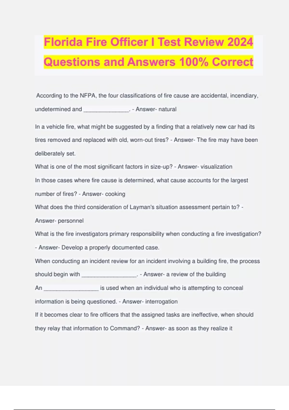 Florida Fire Officer I Test Review 2024 Questions and Answers 100% Correct