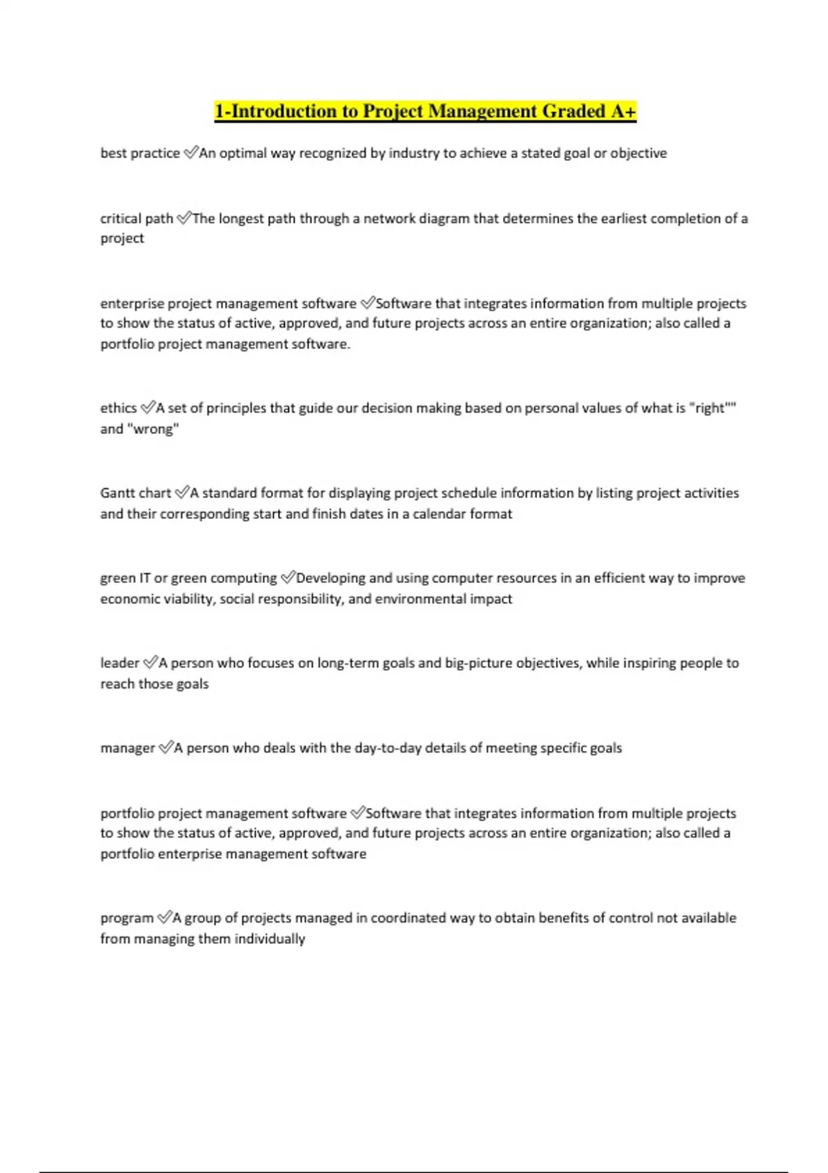 1-Introduction to Project Management Graded A+