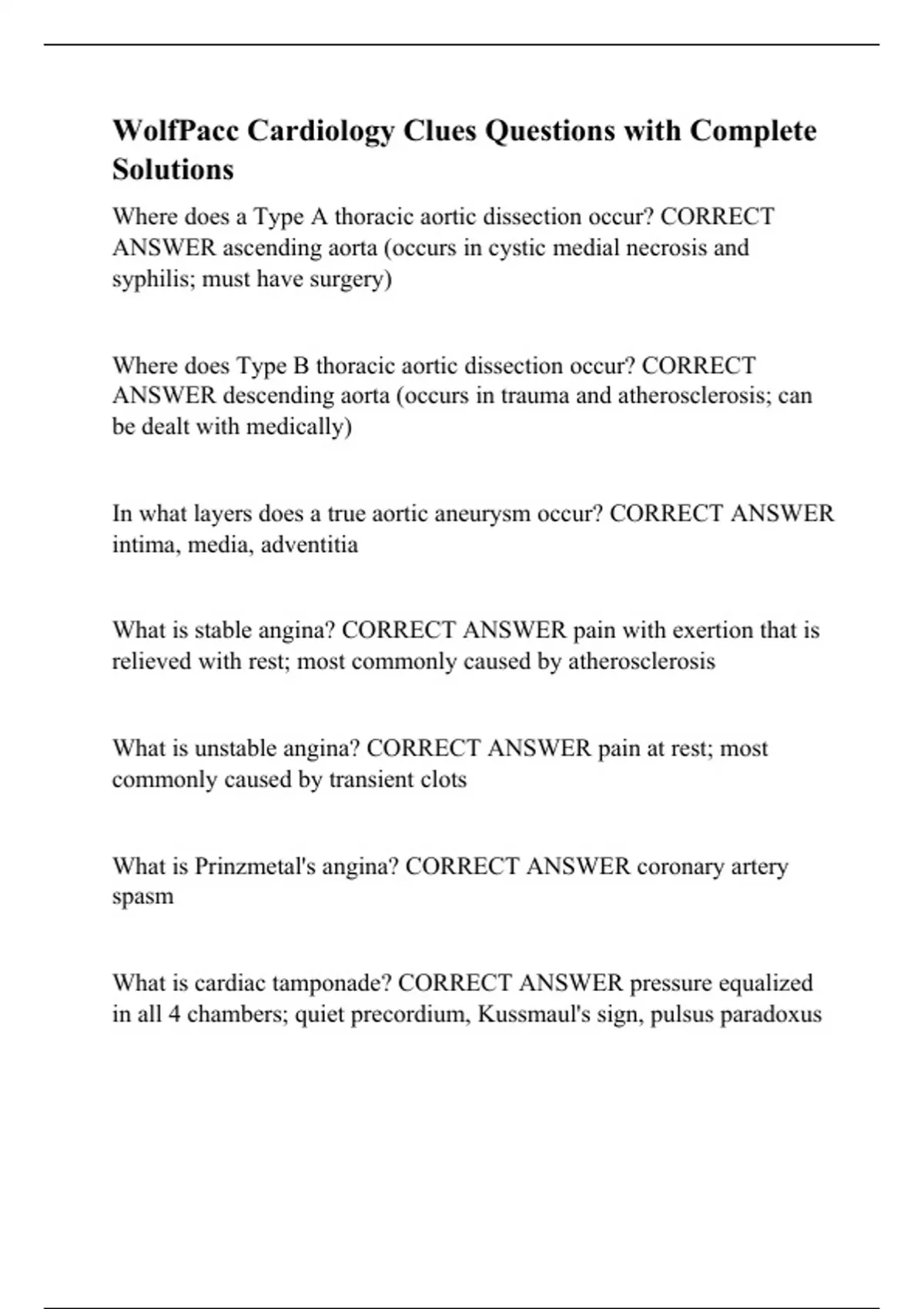 WolfPacc Cardiology Clues Questions with Complete Solutions.
