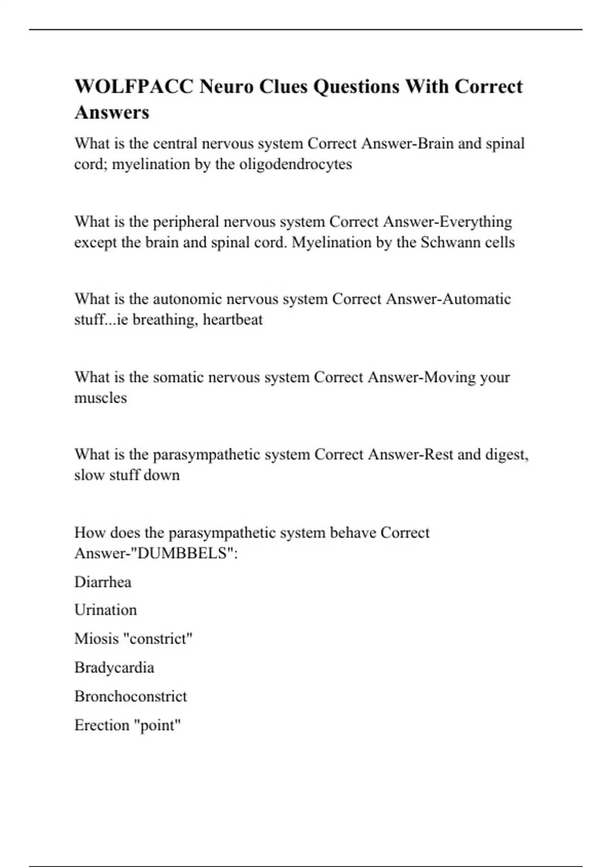 WOLFPACC Neuro Clues Questions With Correct Answers