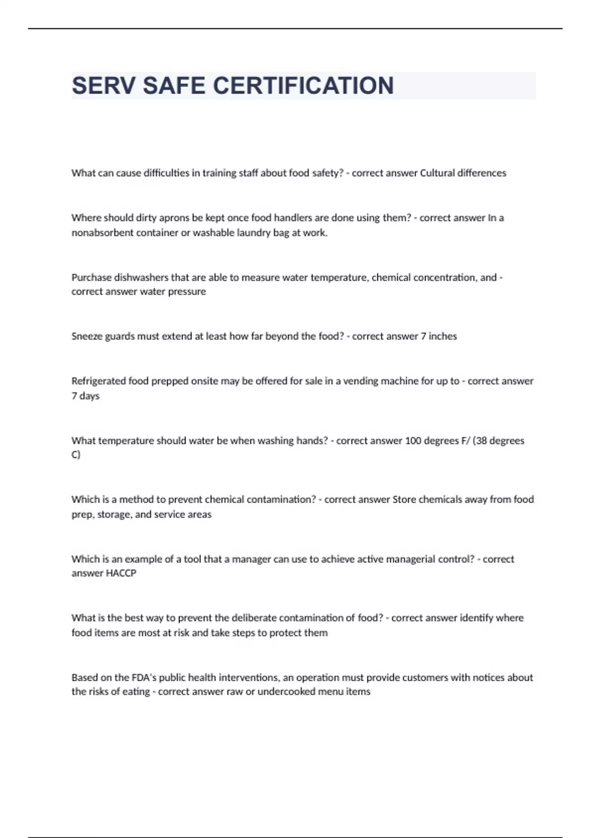 serv safe certification questions and answers veri