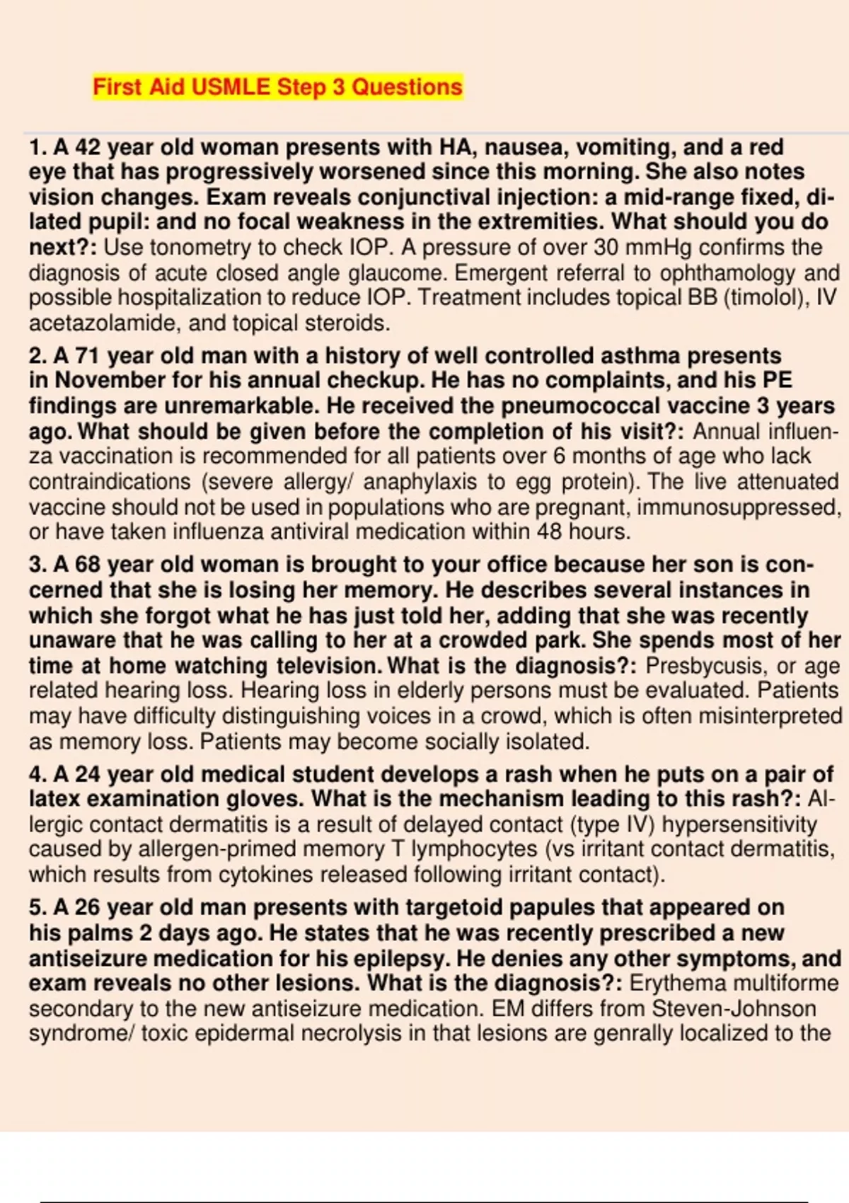 first Aid USMLE Step 3 Questions with correct answers