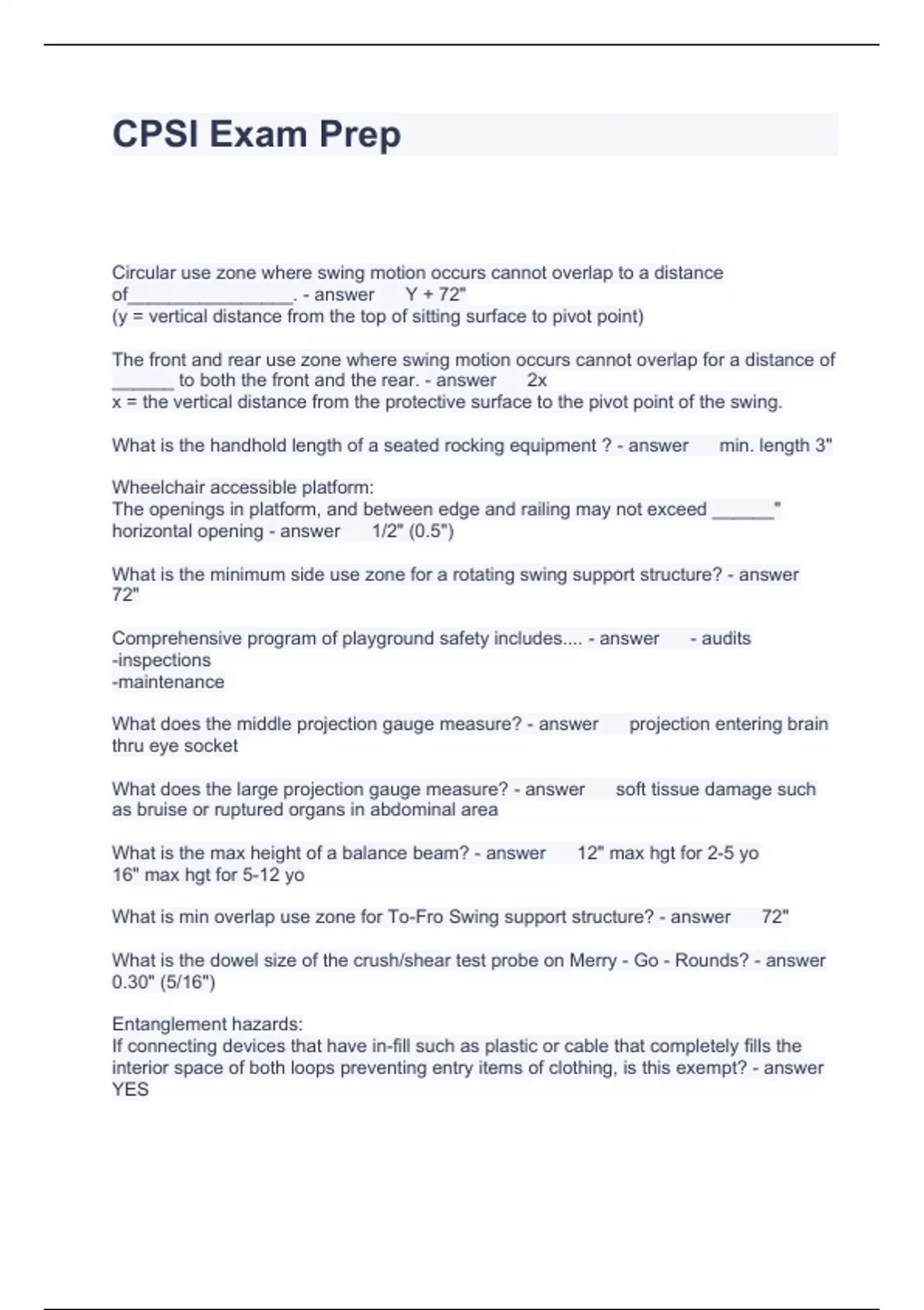 Exam of 12 pages for the course CPSI - Certified Playground Safety Inspector at CPSI - Certified Playground Safety Inspector (CPSI Exam Prep)