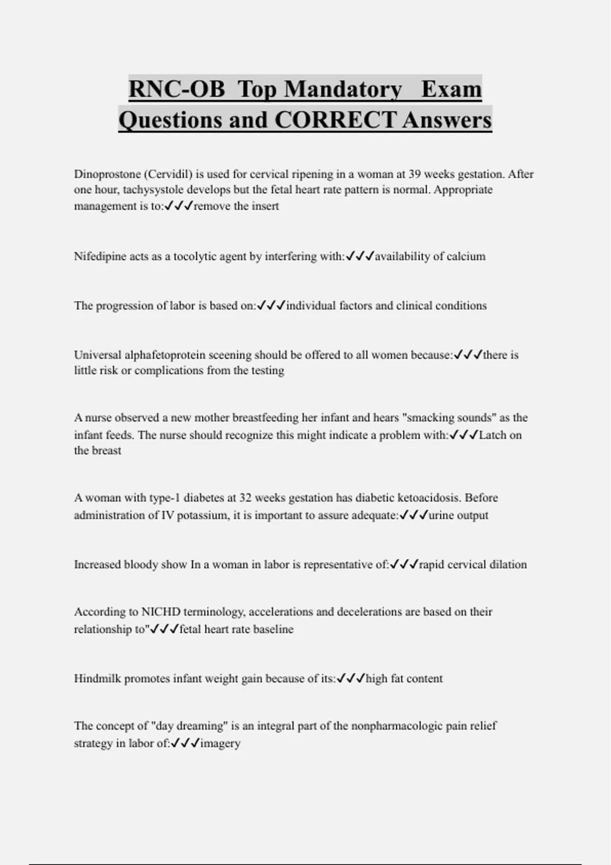 RNC-OB Top Mandatory Exam Questions and CORRECT Answers