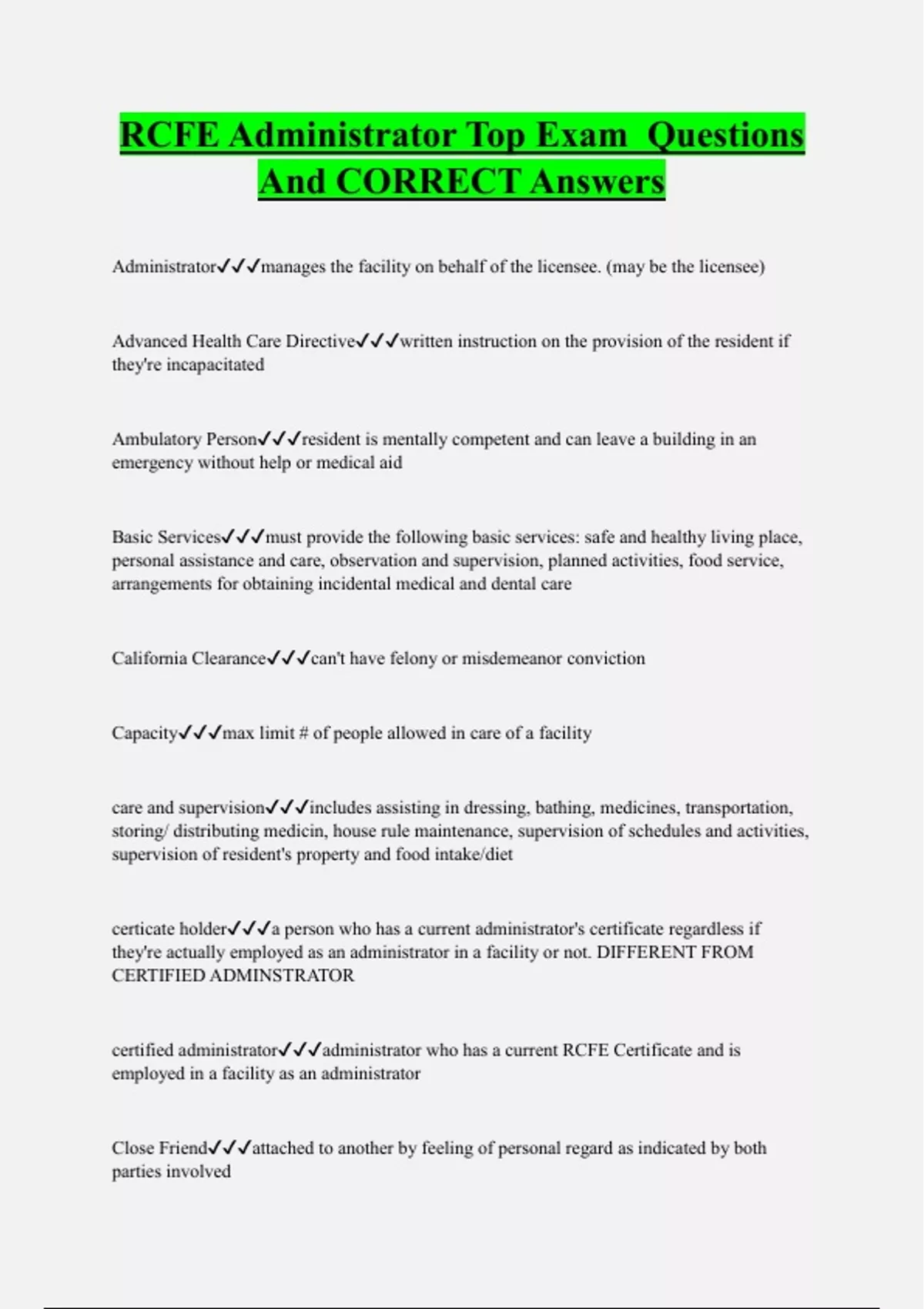 RCFE Administrator Top Exam Questions And CORRECT Answers