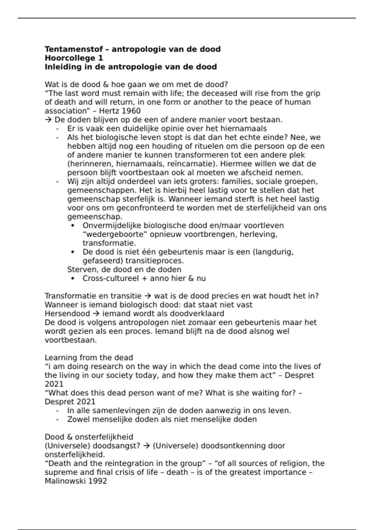 Doodsrituelen (Hertz): zorg en angst (pollutie) meerdere dimensies