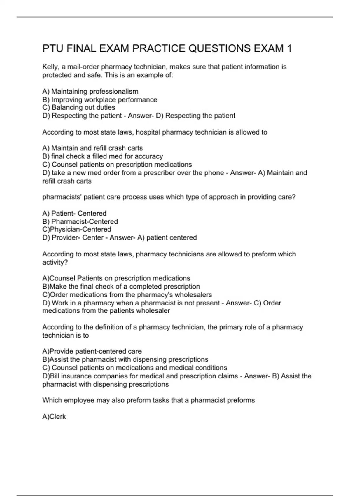 PTU FINAL EXAM PRACTICE QUESTIONS EXAM 1