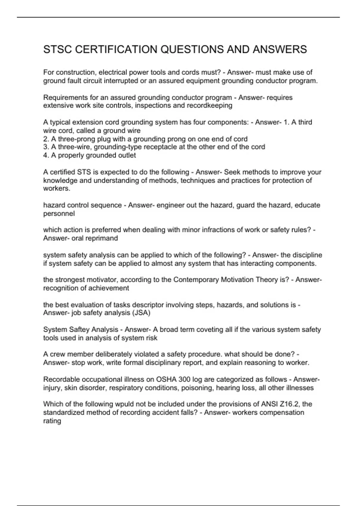 STSC CERTIFICATION QUESTIONS AND ANSWERS