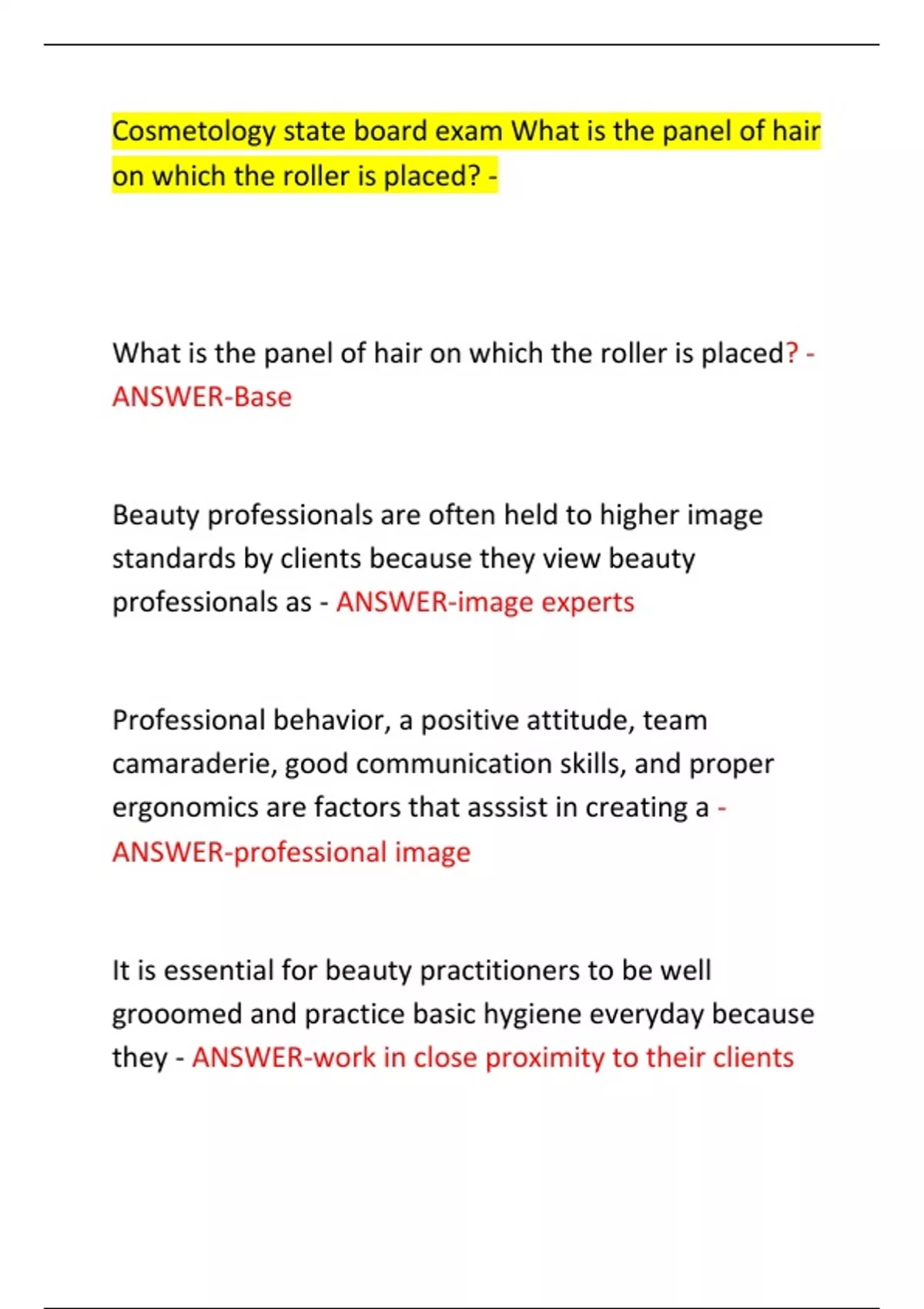 Cosmetology state board exam What is the panel of hair on which the roller is placed? -