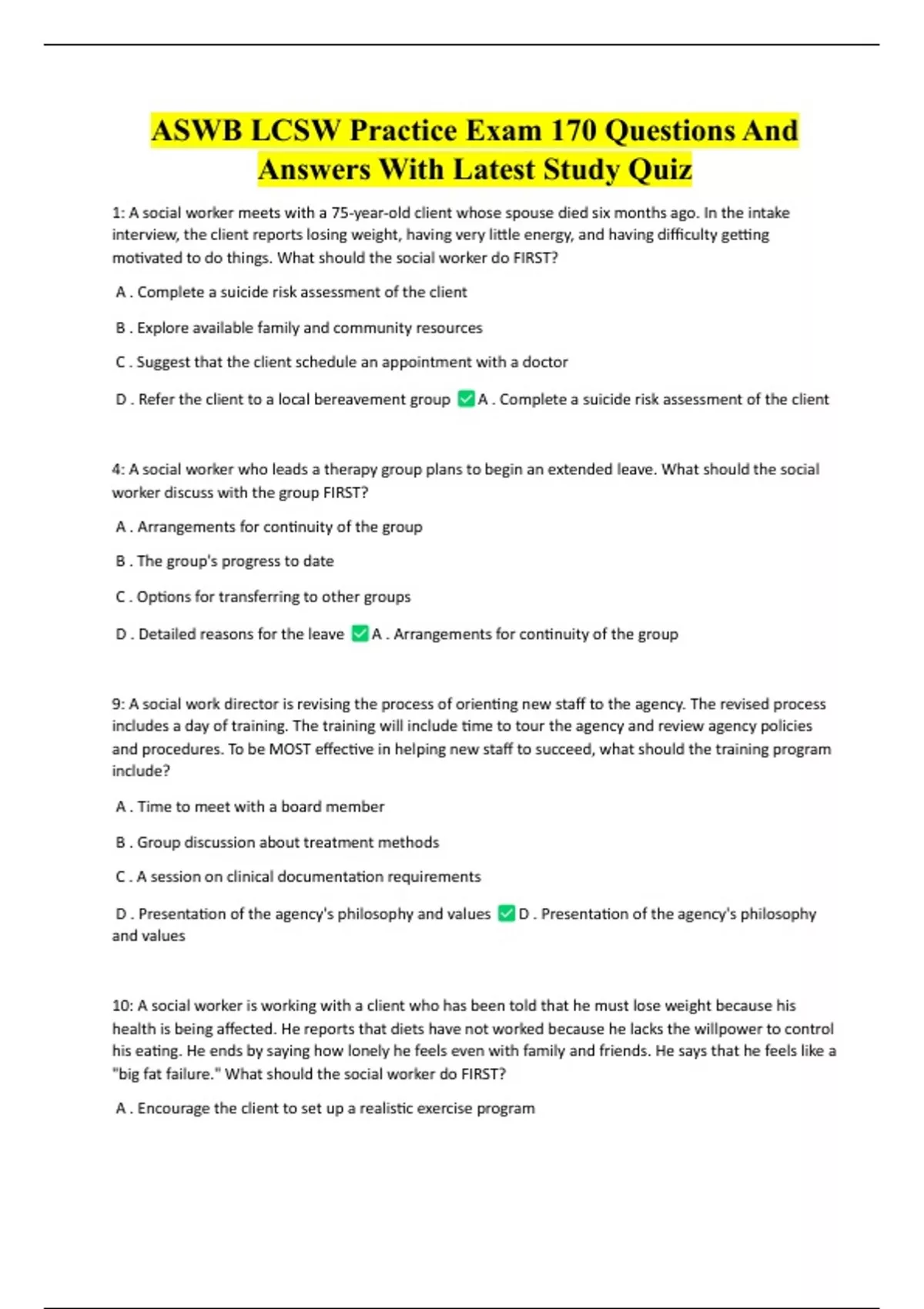 ASWB LCSW Practice Exam 170 Questions And Answers With Latest Study Quiz ASWB LCSW Practice Exam 170 Questions And Answers With Latest Study Quiz