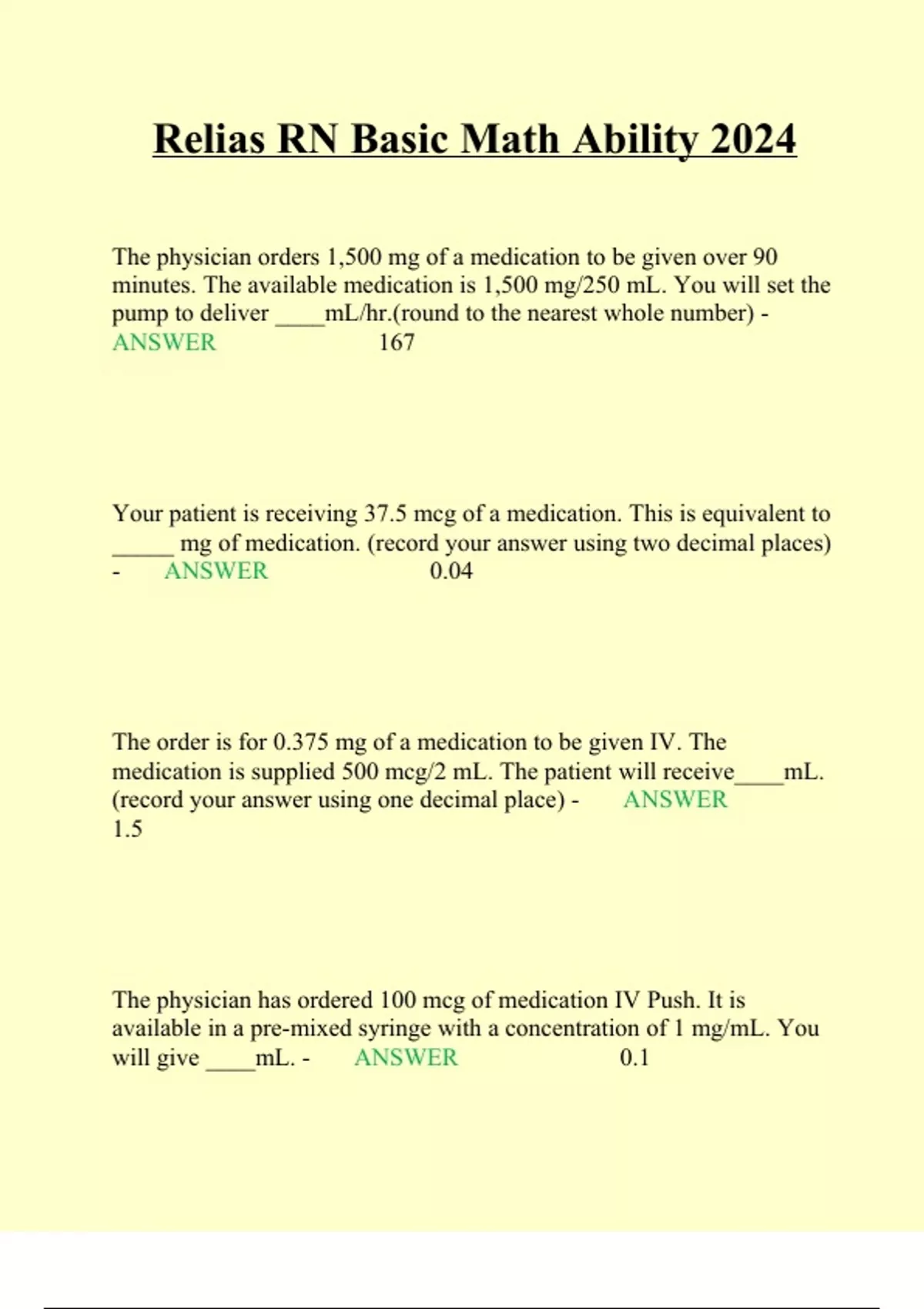 - Relias RN Basic Math Ability