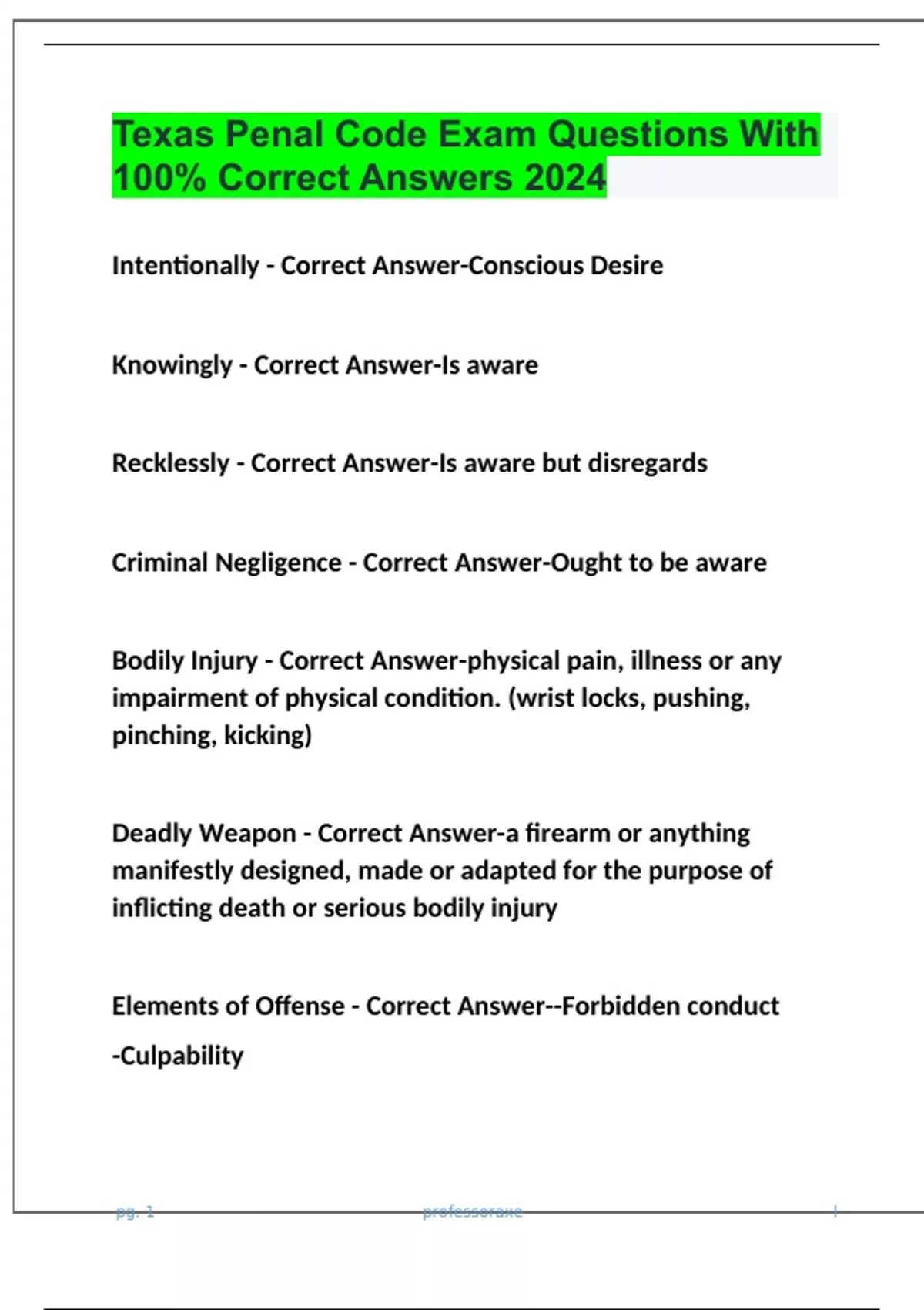 Texas Penal Code Exam Questions With 100% Correct Answers 2024