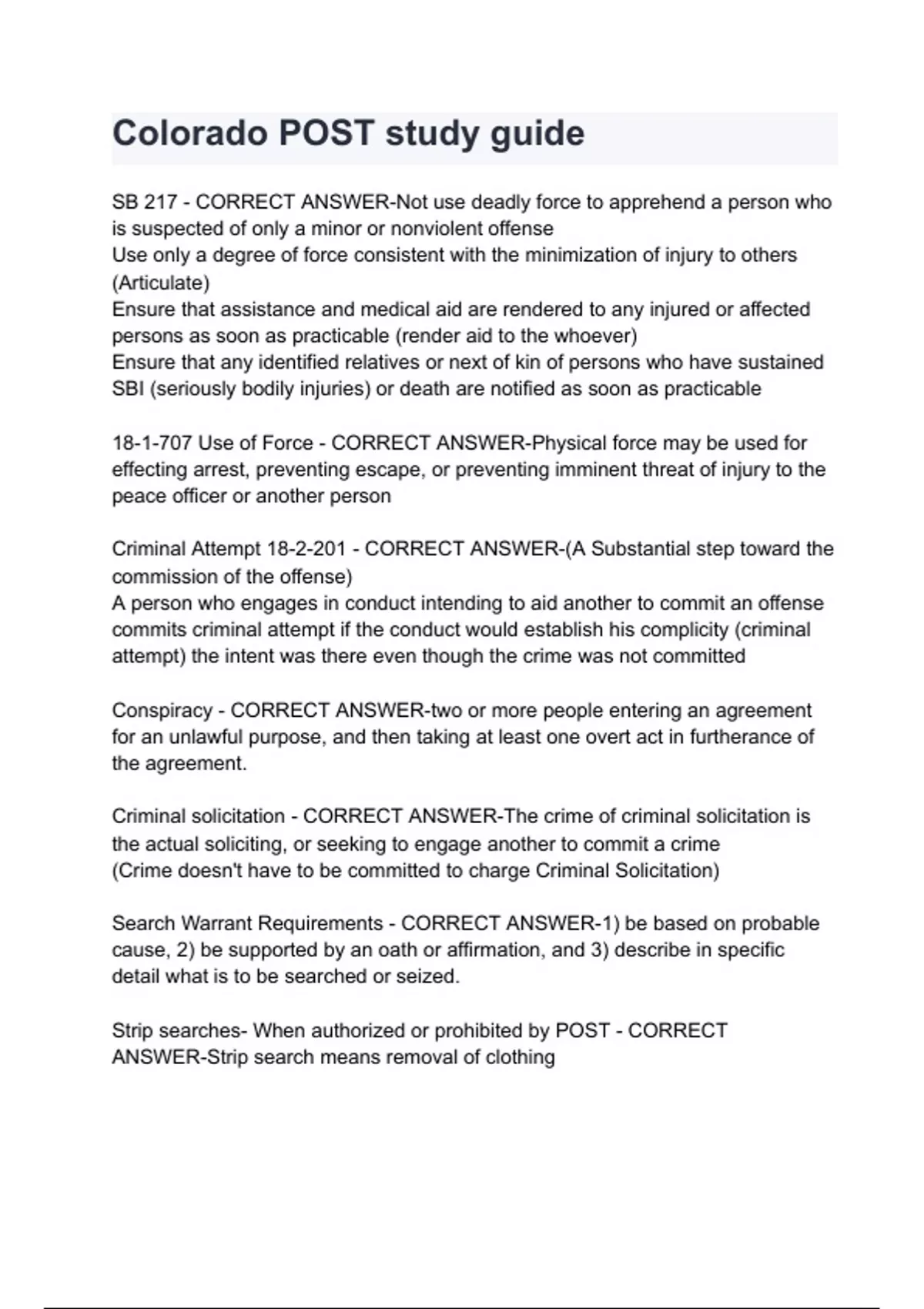 Colorado POST study guide Questions and Answers |Guarantee Pass