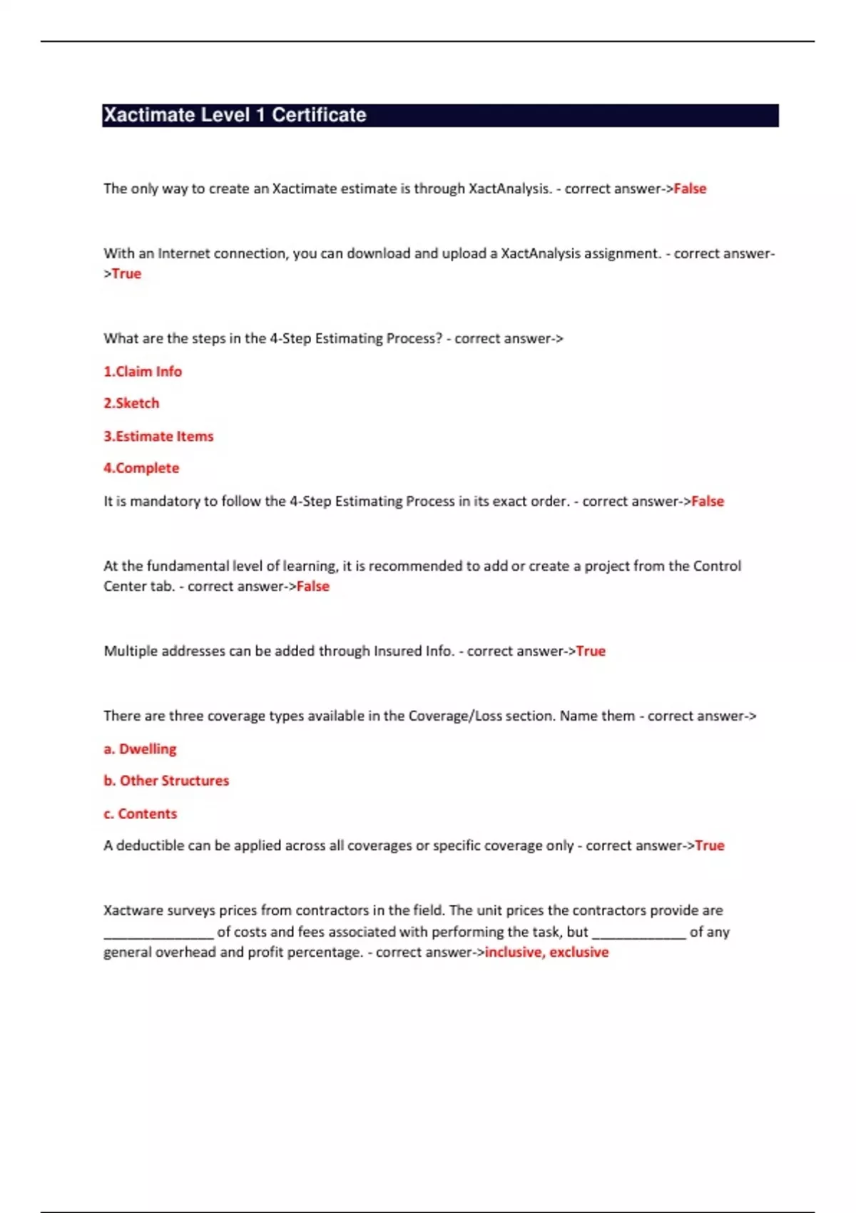 - Xactimate Level 1 Certificate
