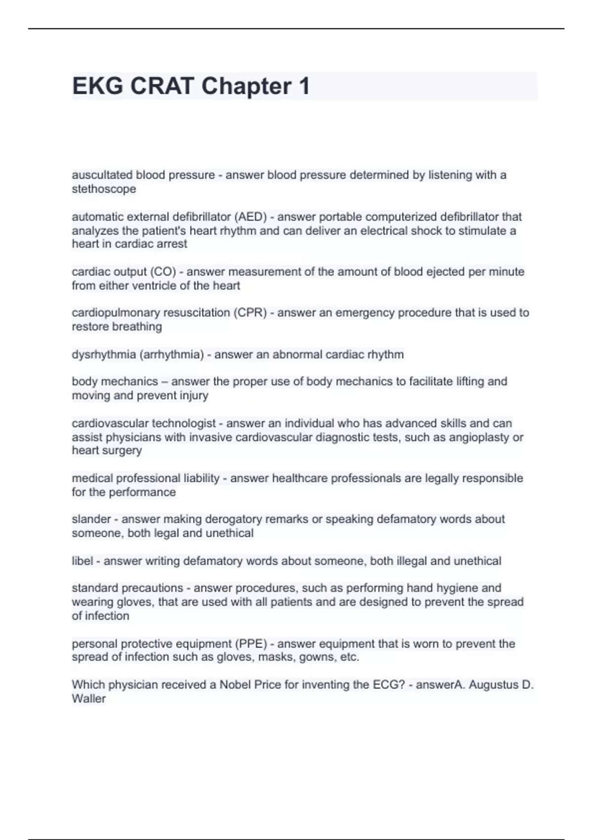 Exam of 3 pages for the course CRAT at CRAT (EKG CRAT Chapter 1)