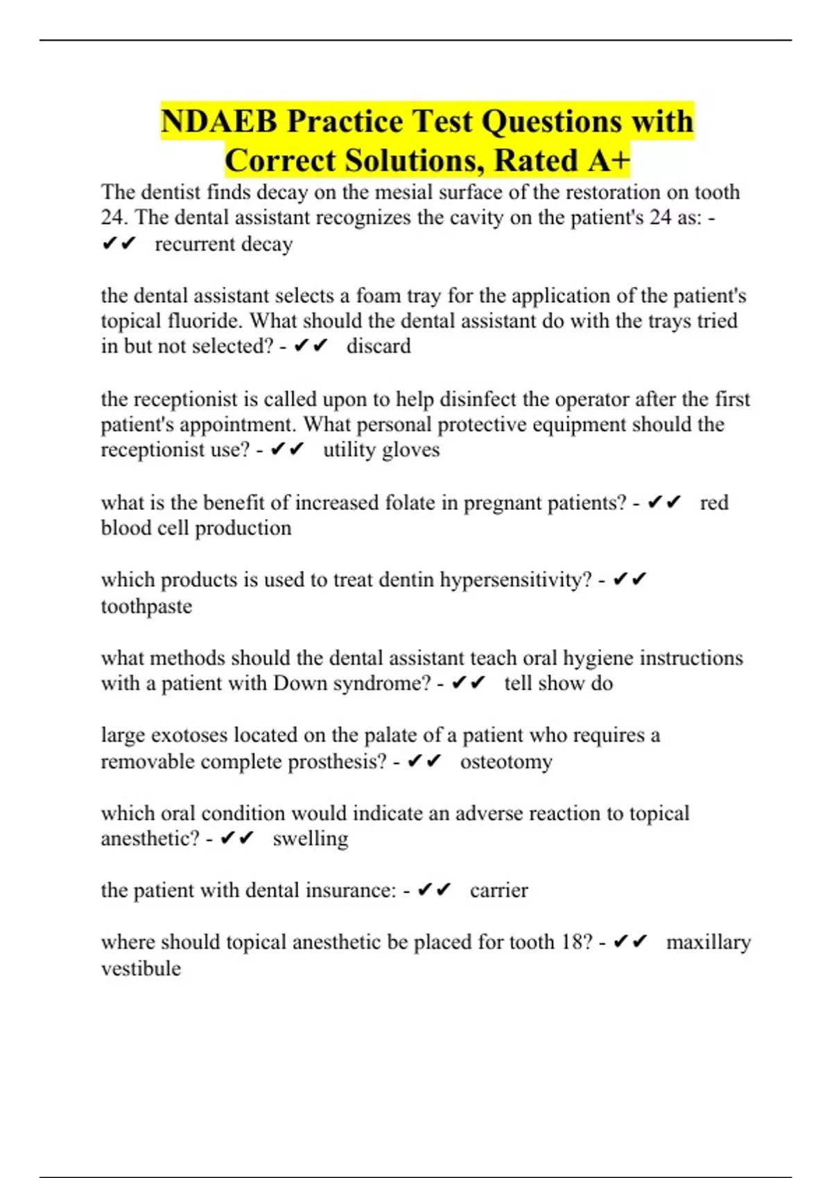 NDAEB Practice Test Questions with Correct Solutions, Rated A+