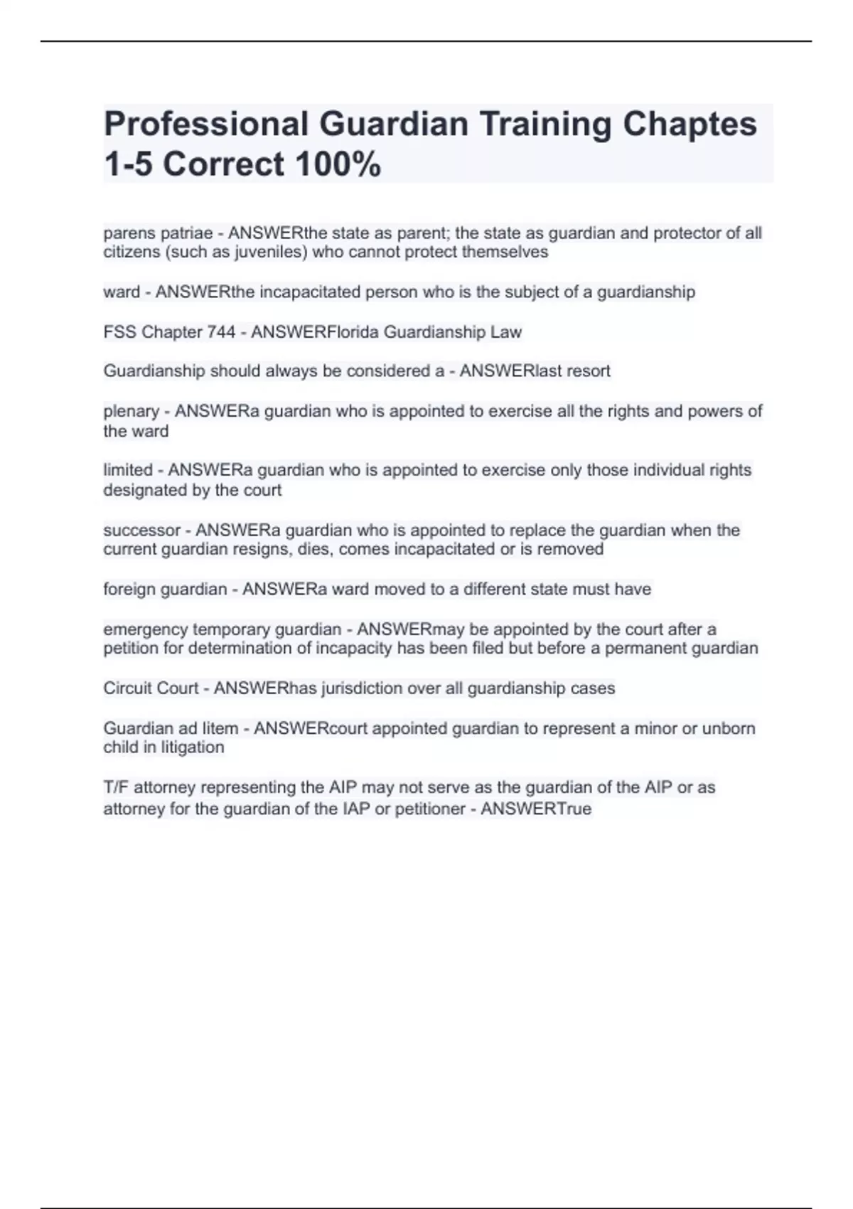 Professional Guardian Training Chaptes 1-5 Correct 100%