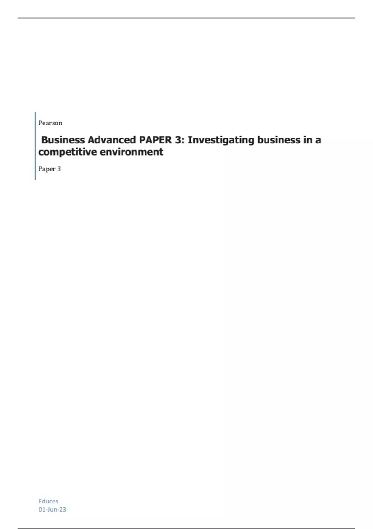 Business Advanced PAPER 3: Investigating business in a competitive environment