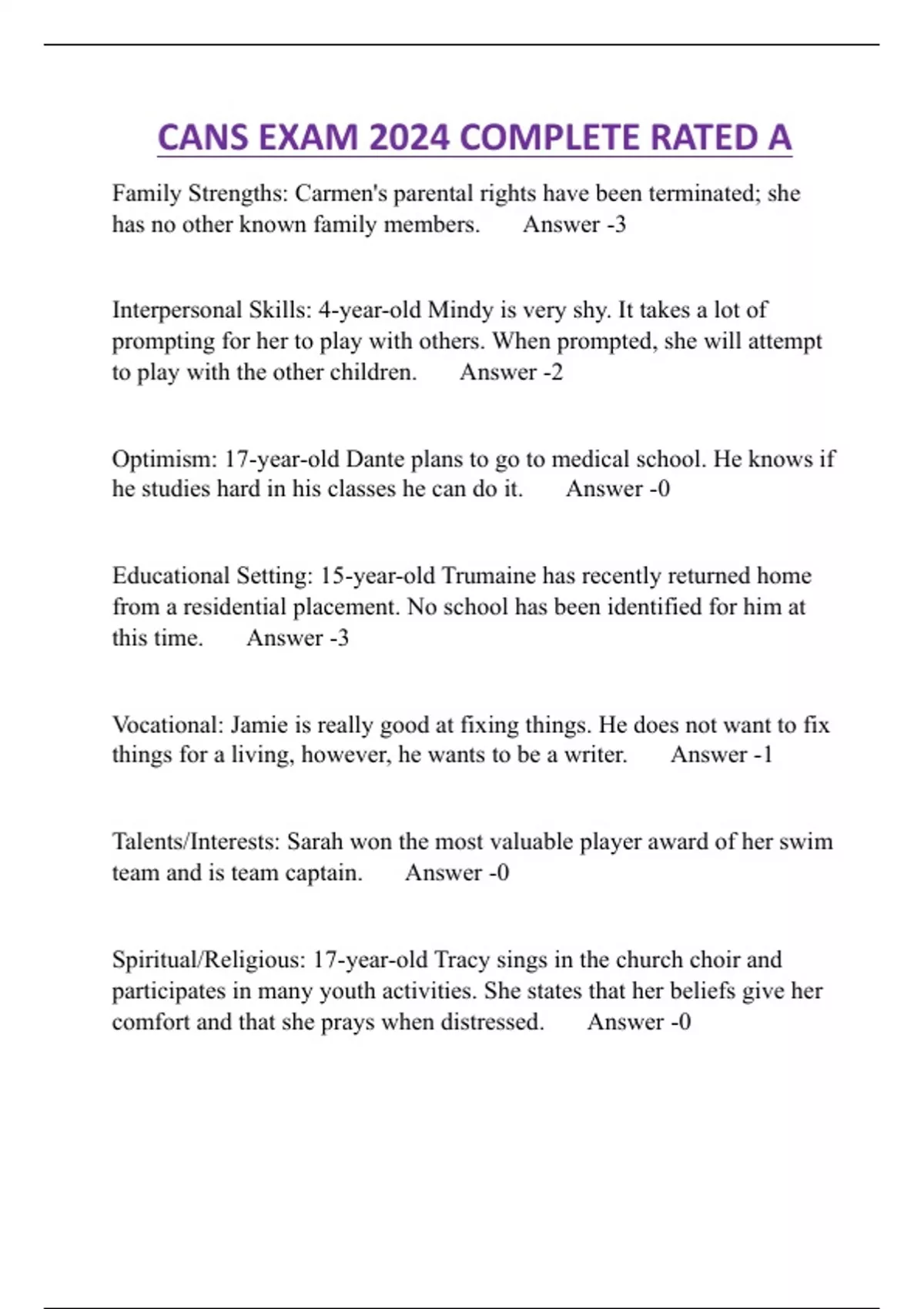 CANS EXAM 2024 COMPLETE RATED A
