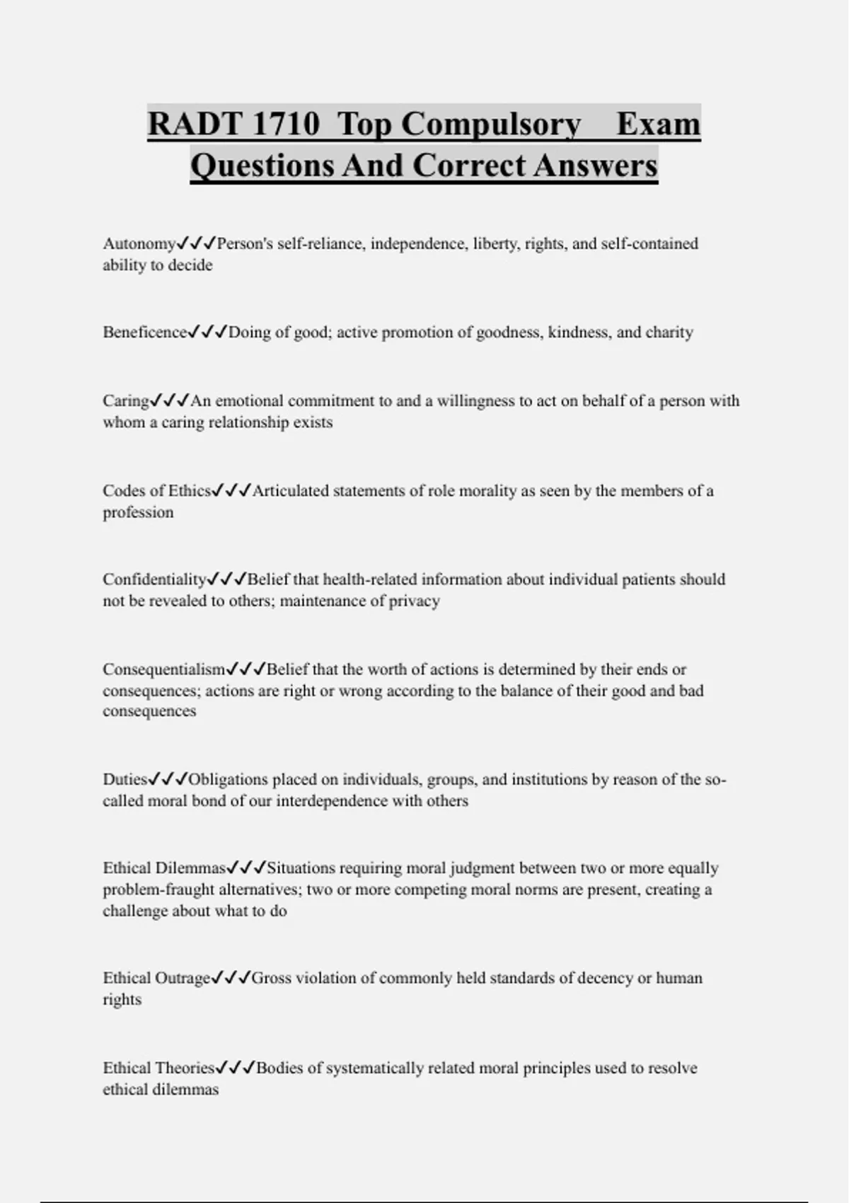 RADT 1710 Top Compulsory Exam Questions And Correct Answers