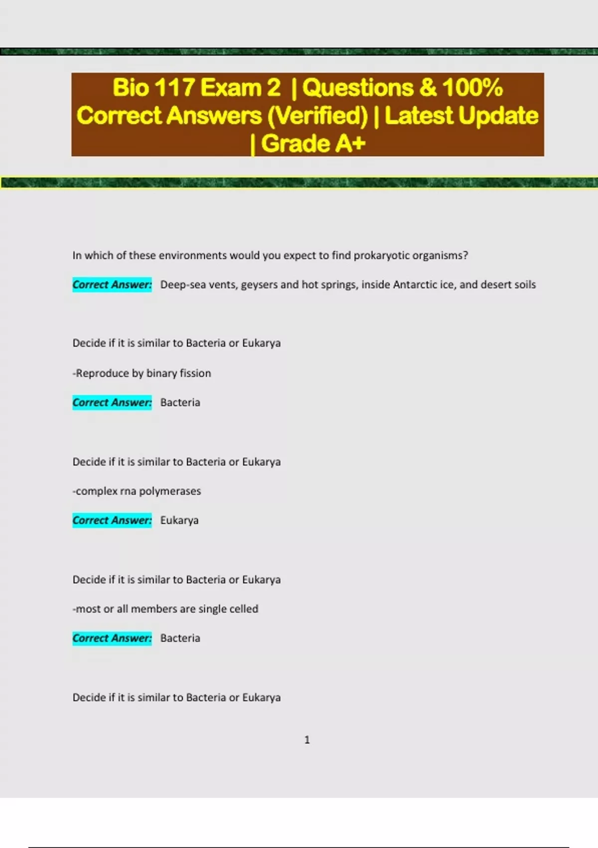 Bio 117 Exam 2 | Questions & 100% Correct Answers (Verified) | Latest Update | Grade A+