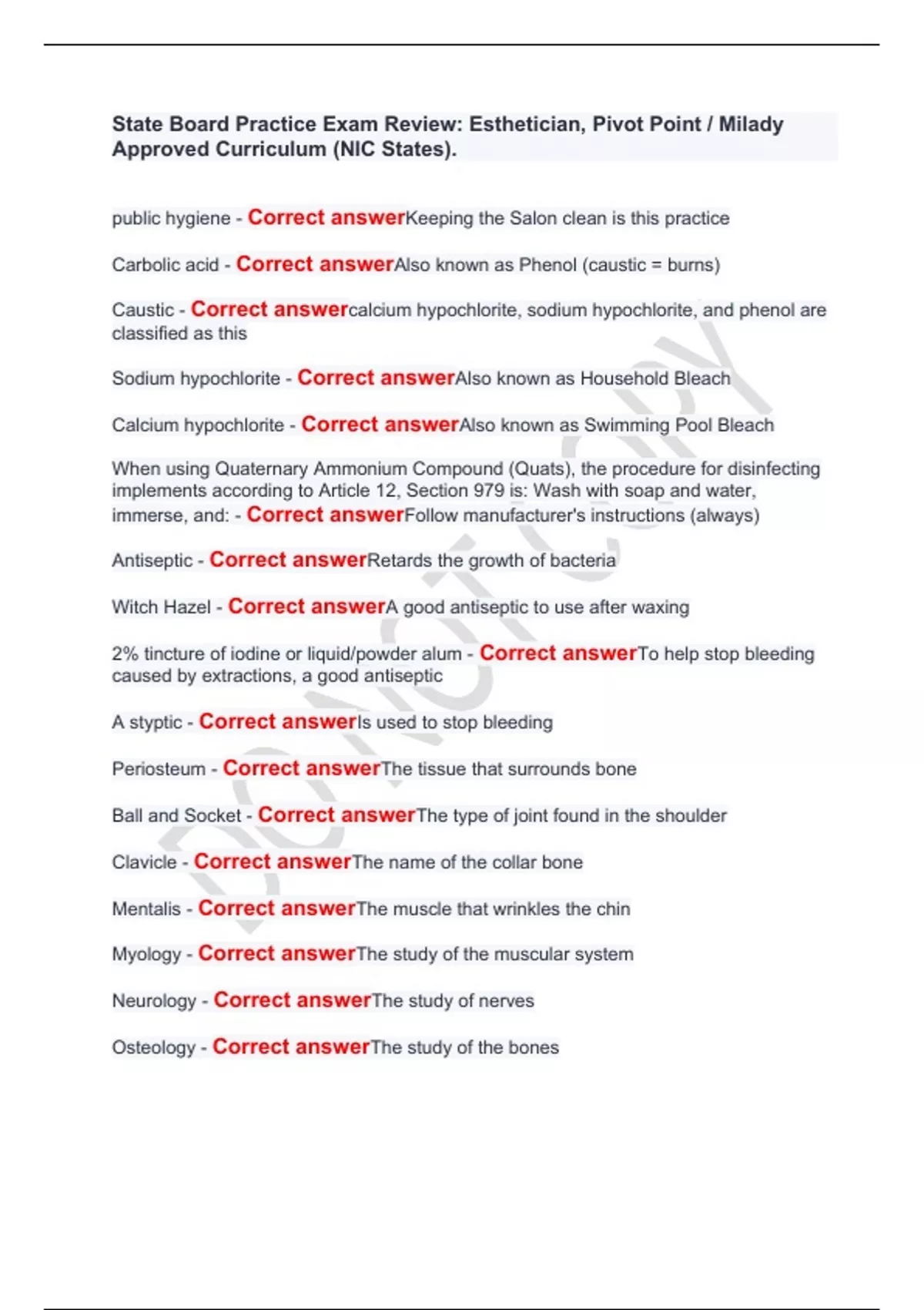 State Board Practice Exam Review: Esthetician, Pivot Point / Milady Approved Curriculum (NIC States)State Board Practice Exam Review: Esthetician, Pivot Point / Milady Approved Curriculum (NIC States)State Board Practice Exam Review: Esthetician, Pivot Point / Milady Approved Curriculum (NIC States)