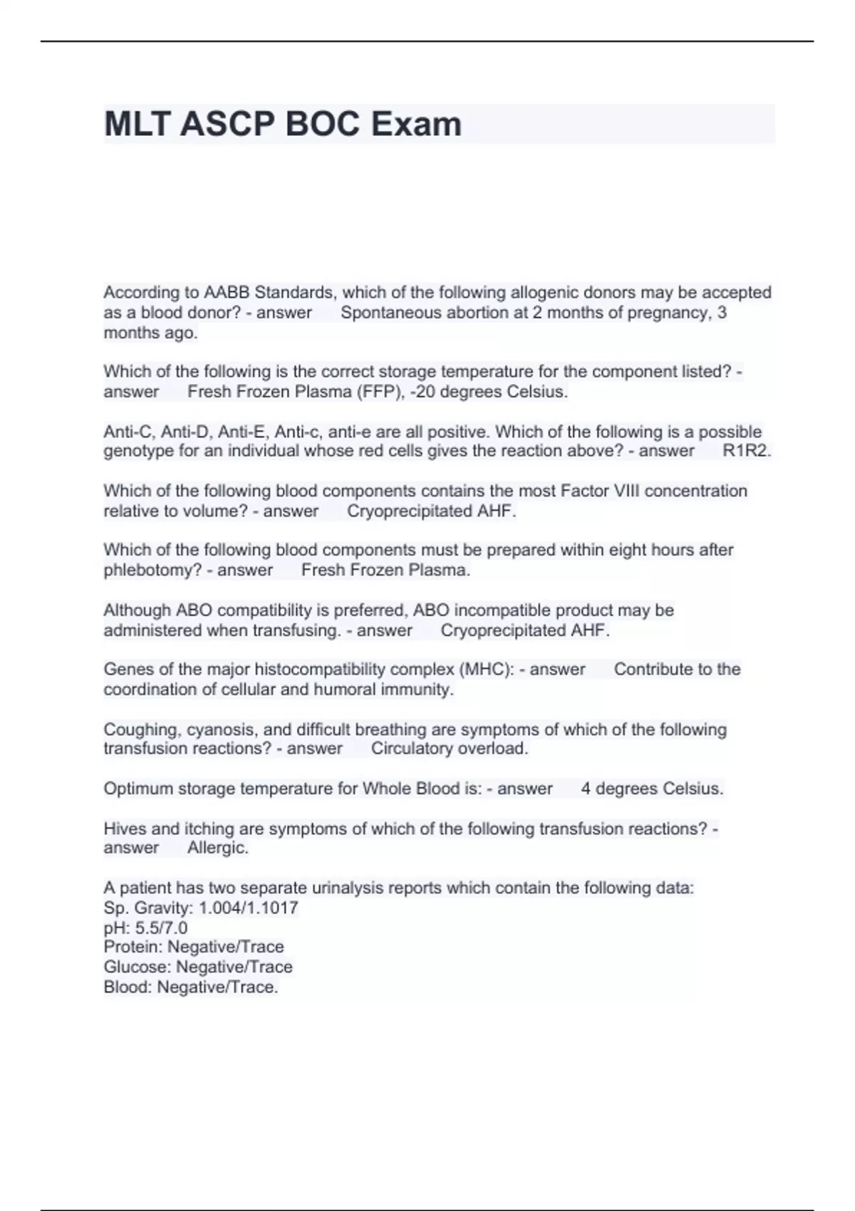 Exam of 8 pages for the course ASCP at ASCP (MLT ASCP BOC Exam)