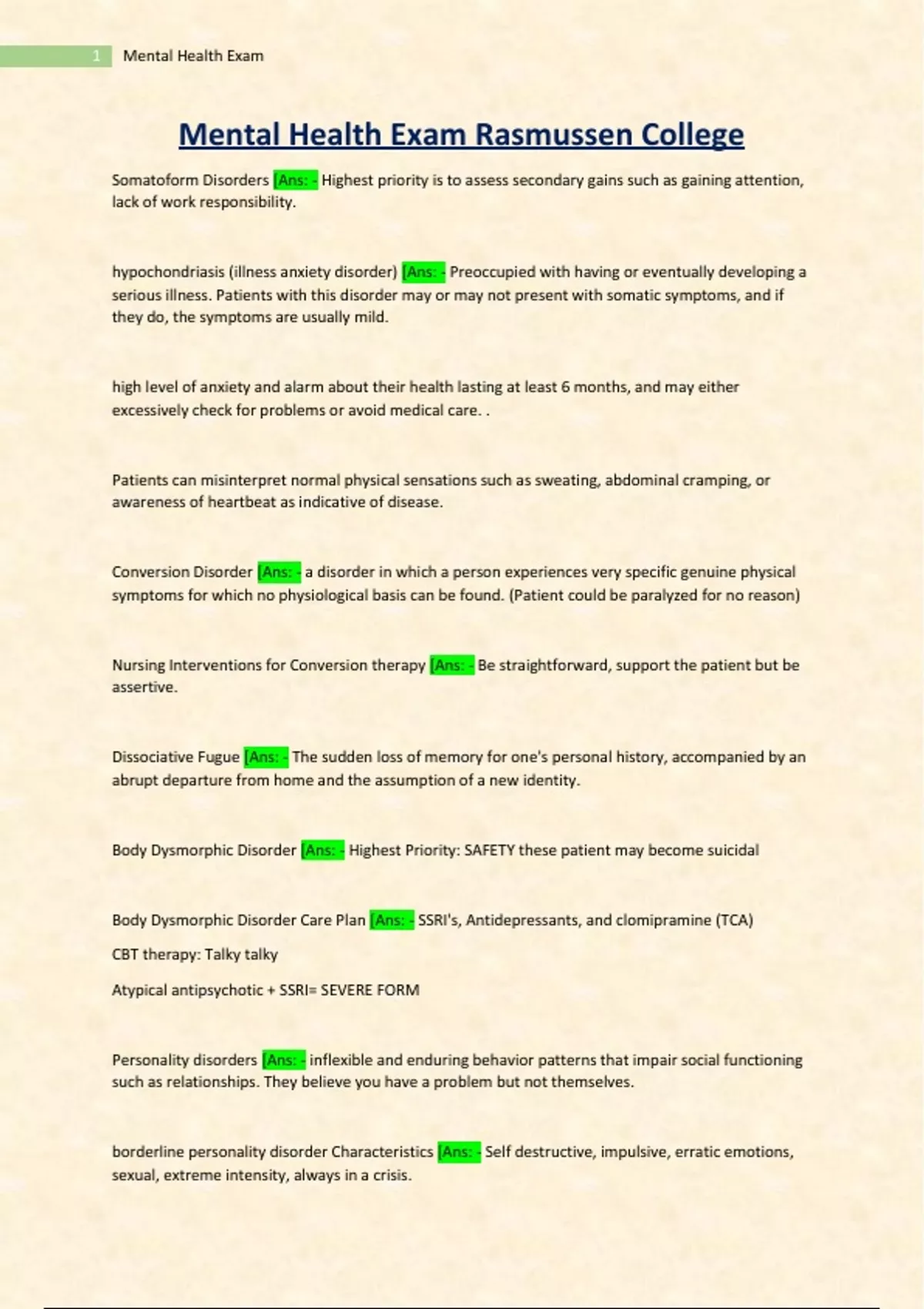 Mental Health Exam Rasmussen College Solved 100% Correct 2024/2025