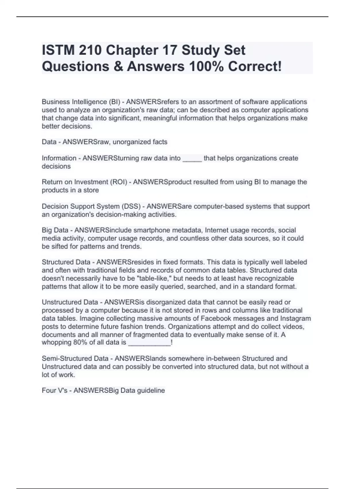 ISTM 210 Chapter 17 Study Set Questions & Answers 100% Correct!