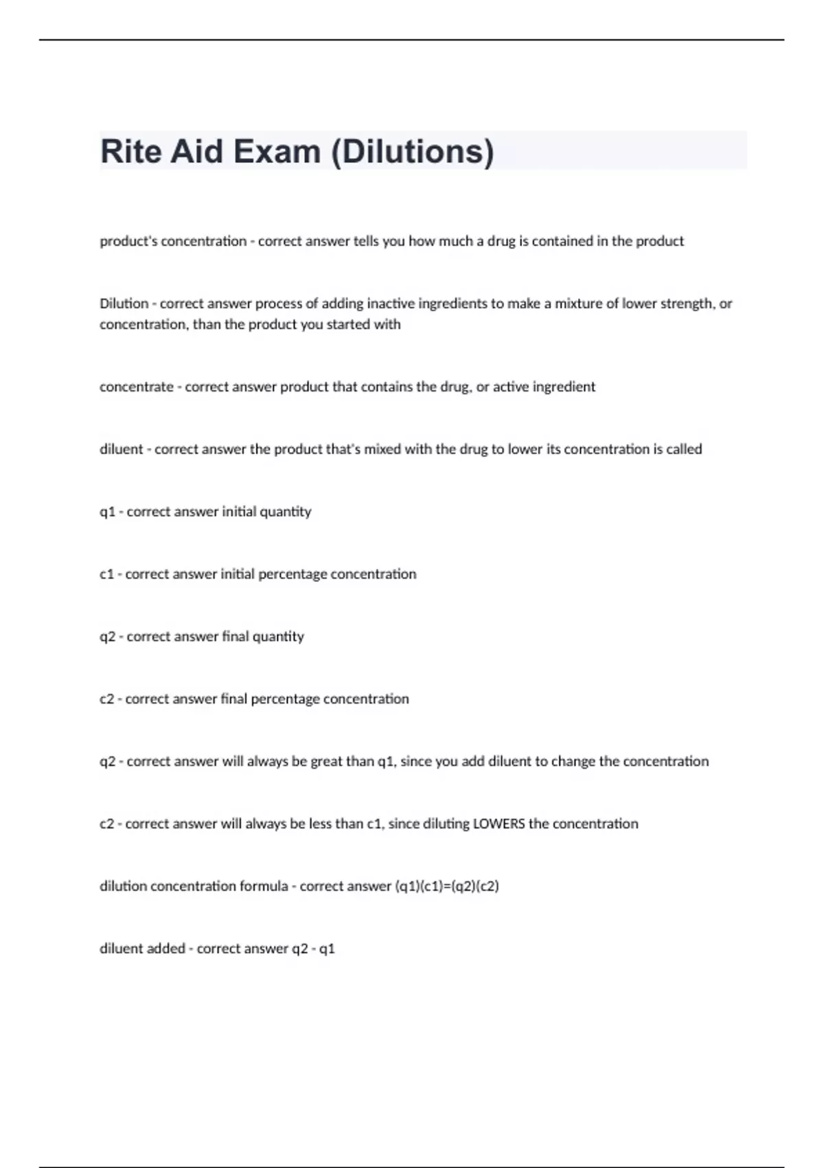 Rite Aid Exam (Dilutions)question n answers graded A+ 2024/2025