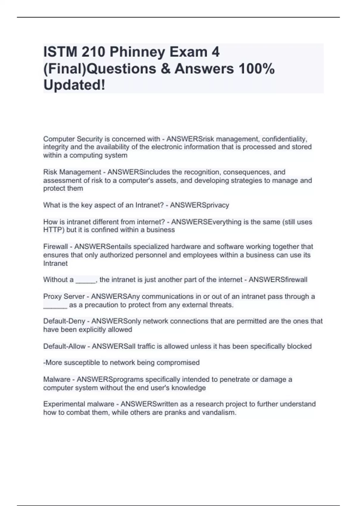 ISTM 210 Phinney Exam 4 (Final)Questions & Answers 100% Updated!
