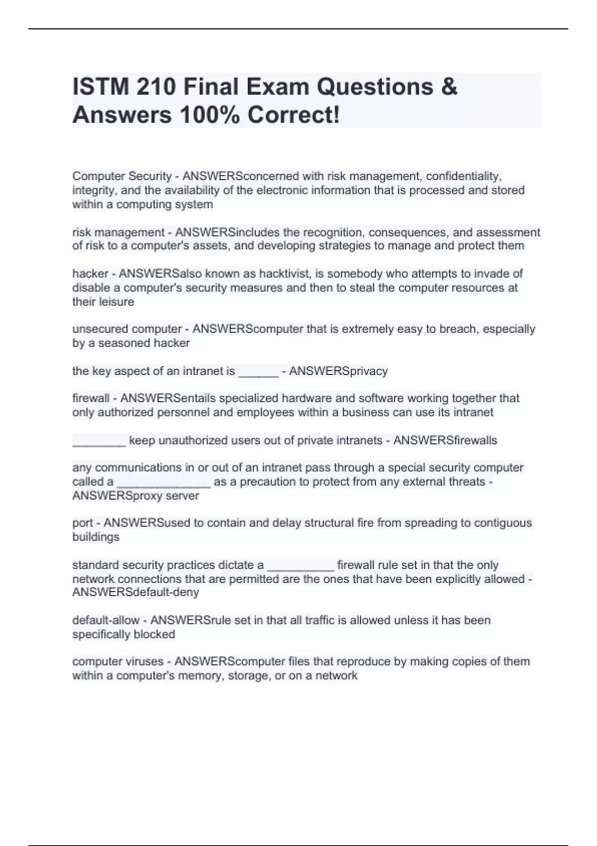 ISTM 210 Final Exam Questions & Answers 100% Correct!