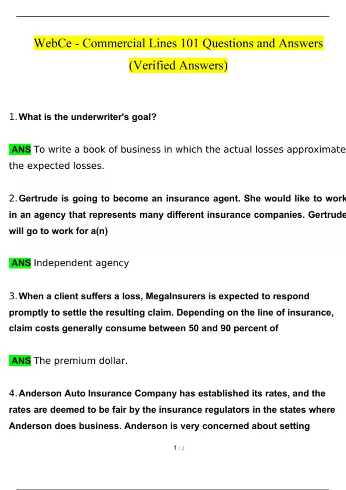 WebCe - Commercial Lines 101 Questions and Answers 2024 / 2025 | 100% Verified Answers WebCe - Commercial Lines 101 Questions and Answers 2024 / 2025 | 100% Verified Answers WebCe - Commercial Lines 101 Questions and Answers 2024 / 2025 | 100% Verified Answers WebCe - Commercial Lines 101 Questions and Answers 2024 / 2025 | 100% Verified Answers WebCe - Commercial Lines 101 Questions and Answers 2024 / 2025 | 100% Verified Answers