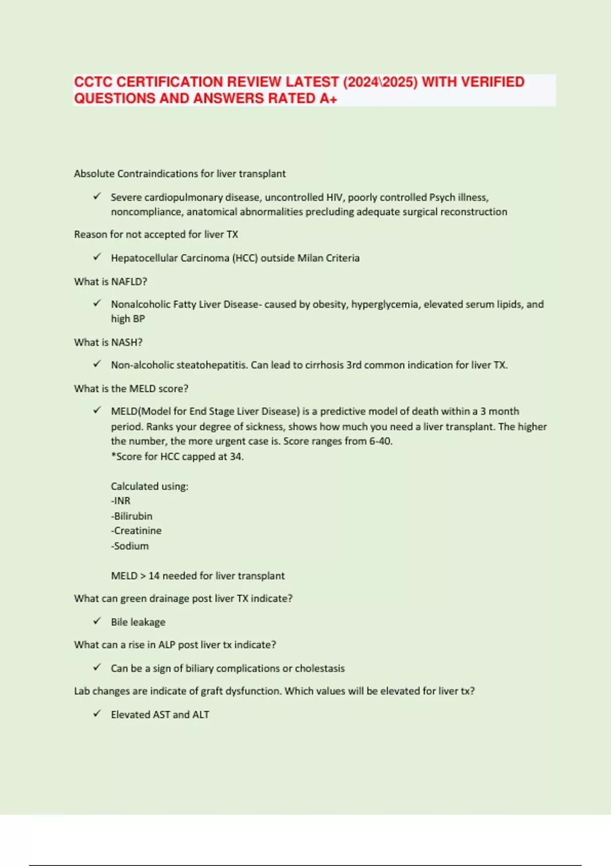CCTC CERTIFICATION REVIEW LATEST () WITH VERIFIED QUESTIONS AND ANSWERS RATED A+