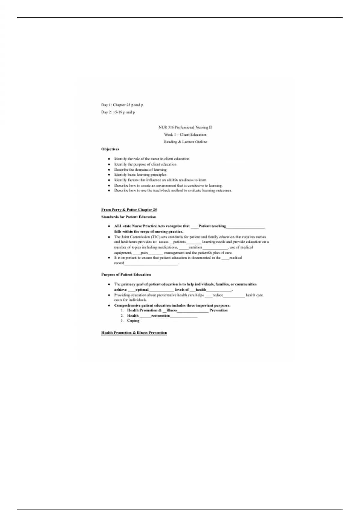 Nur 316- Client Education lecture outline