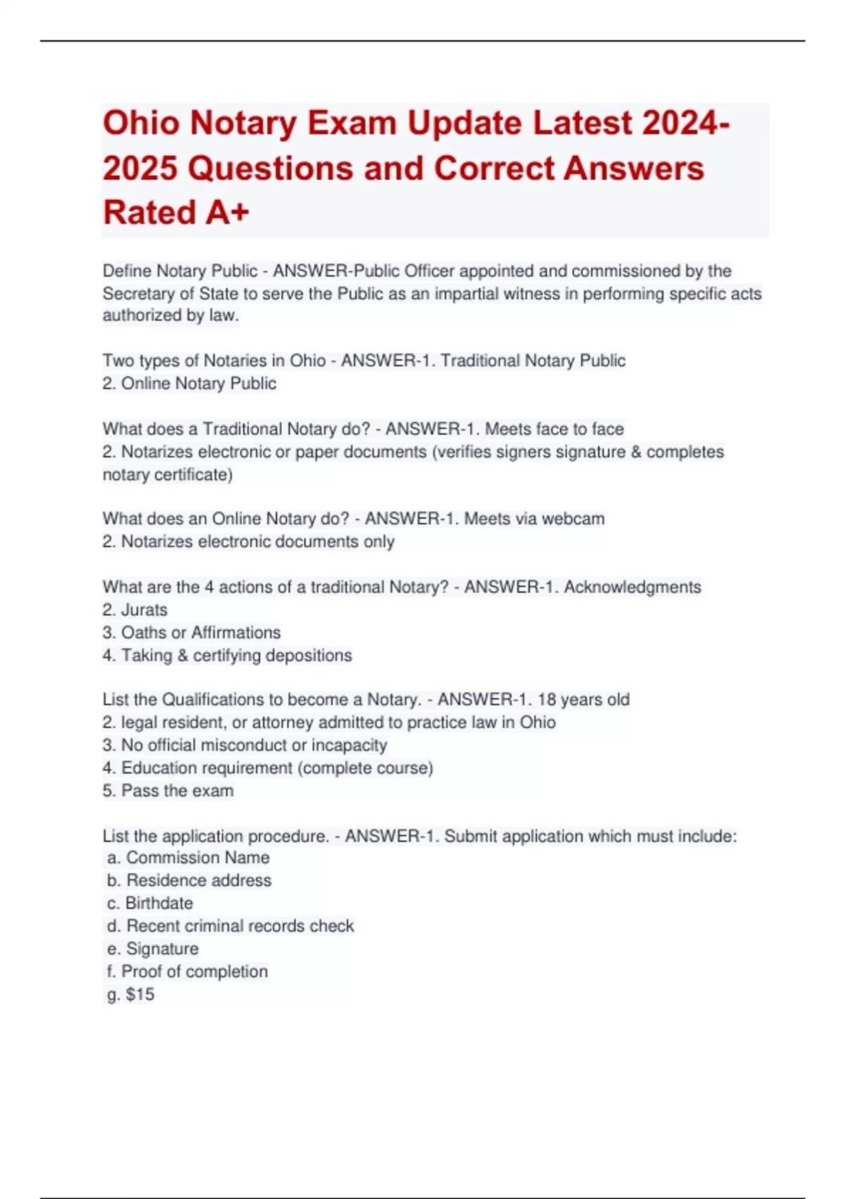 Ohio Notary Exam Update Latest Questions and Correct Answers Rated A+