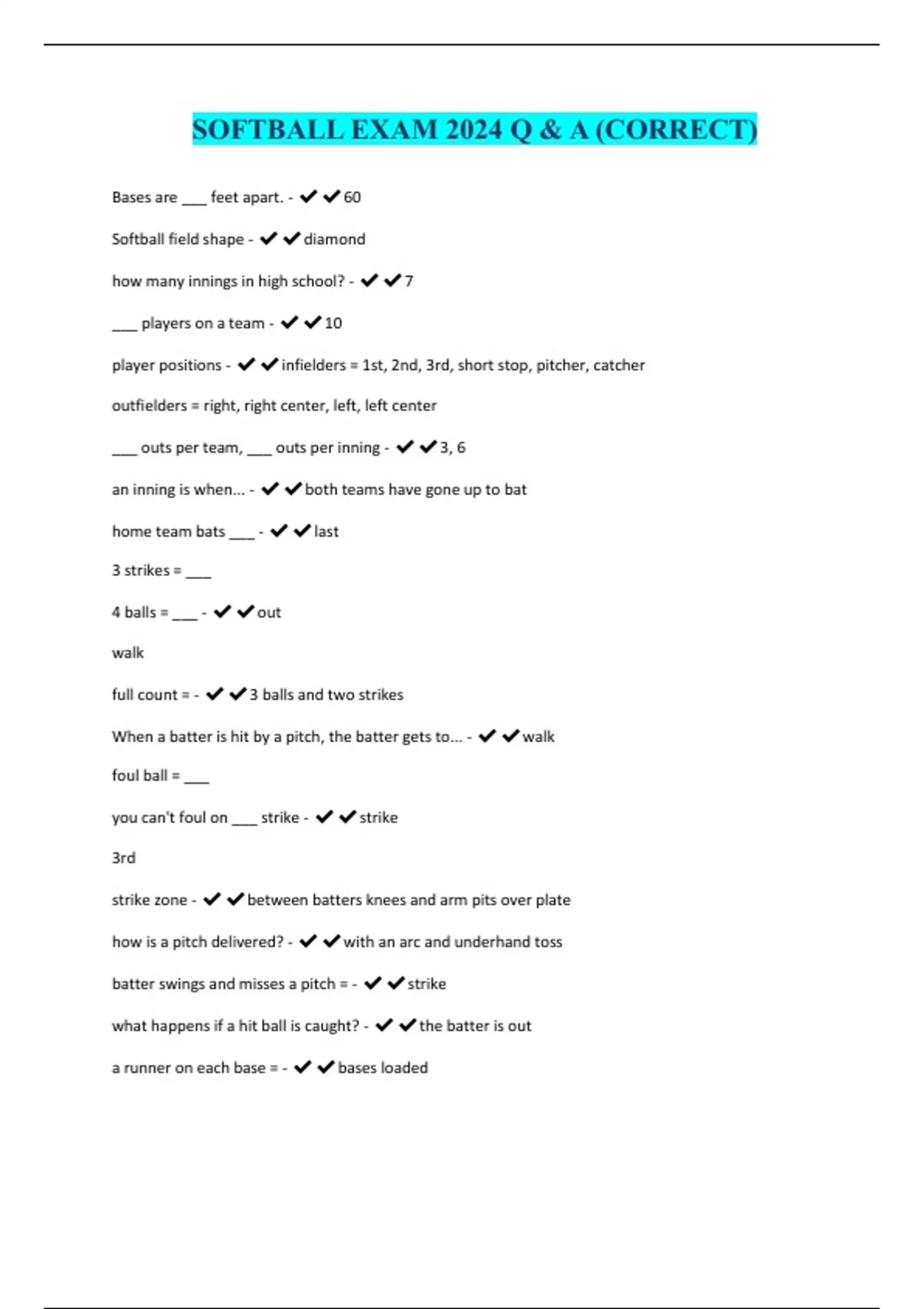 SOFTBALL EXAM 2024 Q & A (CORRECT)